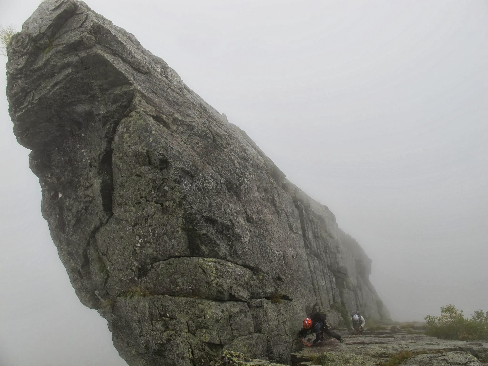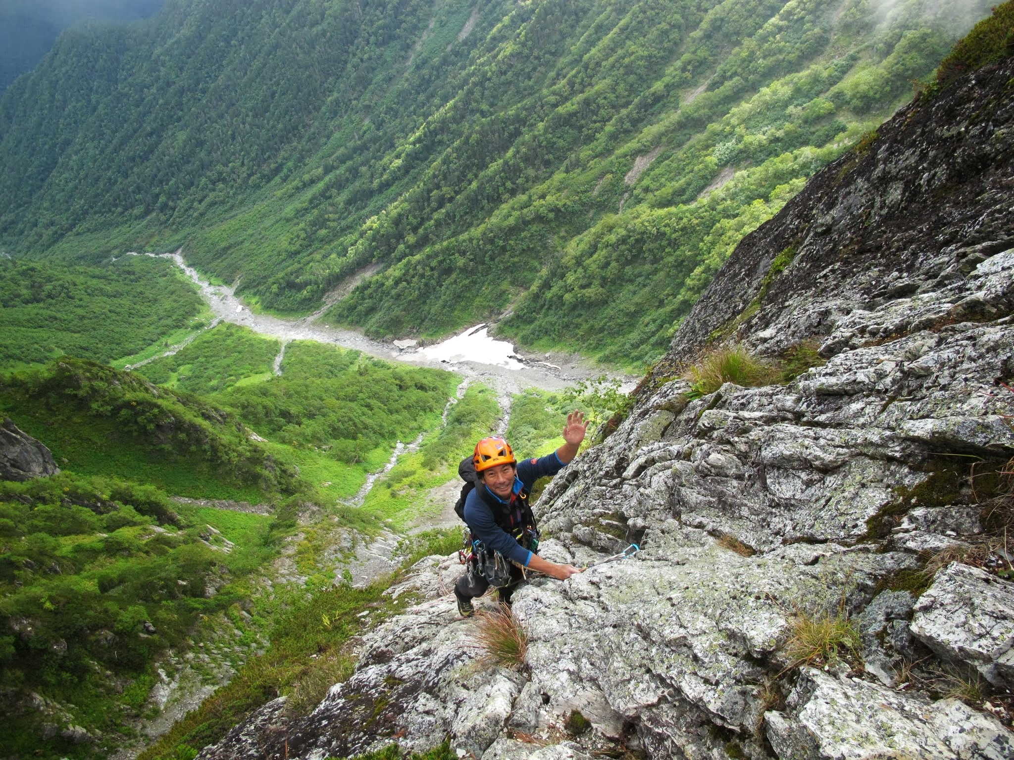 ・N野-M藤パーティも間を空けることなく順調に続き、城塞ハングを越え終了テラスで10時、その直後から雨が降りだしました。日頃の岩トレで目標にしてきた”アルパインはスピード最優先”のトレーニング成果を十分に発揮することができました。