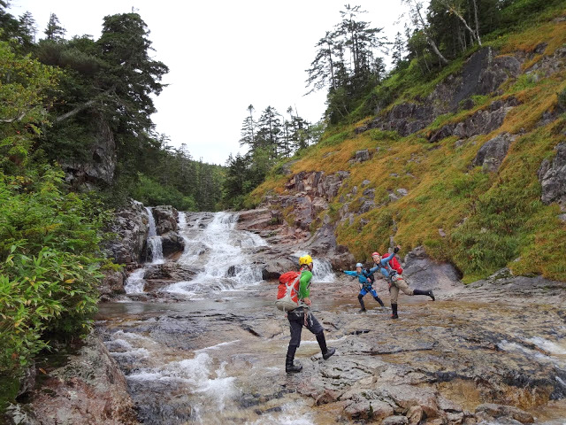 5:45薬師沢小屋→6:55赤木沢出合→8:30大滝下→10:03 2420m地点(沢筋から離脱)→10:37稜線登山道→12:24太郎平小屋12:53→15:08折立登山口