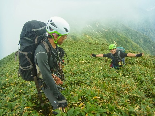 2時間ほど進んで幕営。幕営地は胸ほどの笹薮。夜半に風が出てきたが笹の壁により安泰。ただ調理するのにガスがぷかぷか浮いて大変だった。