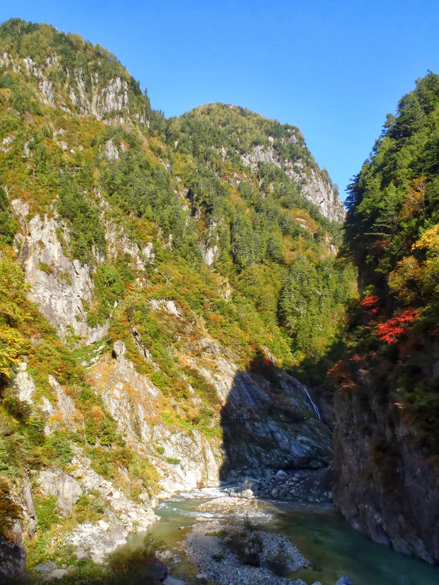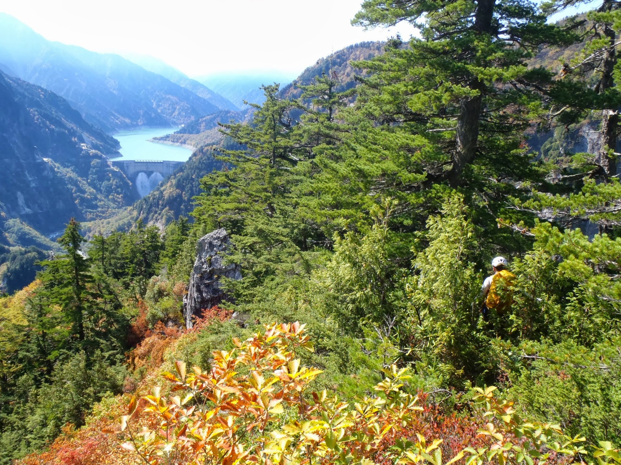 黒四ダムから別山を振り返ると見栄えのするP2、P1まで遙かに及ばない下の方をゴニョゴニョしてきた山行だったが、いろいろ勉強になる沢?だった。