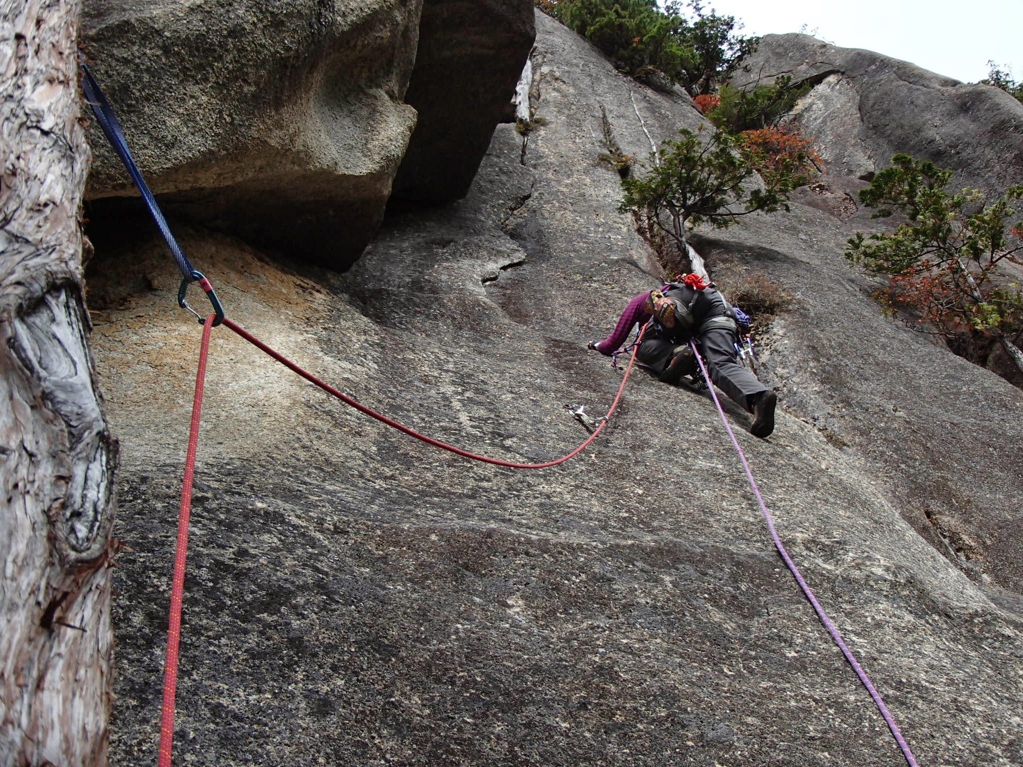 ビレイポイントを間違えたのでロープの流れが悪くなってすみません。難しくはないがプロテクションはよくない。核心は中間部のトラバース。重心の入れ替えがバランシー。
