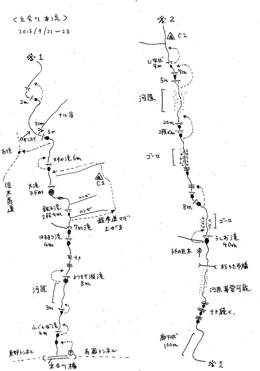6:00京都=10:30立合橋/11:00入渓-13:30大滝-15:30遊歩道C1