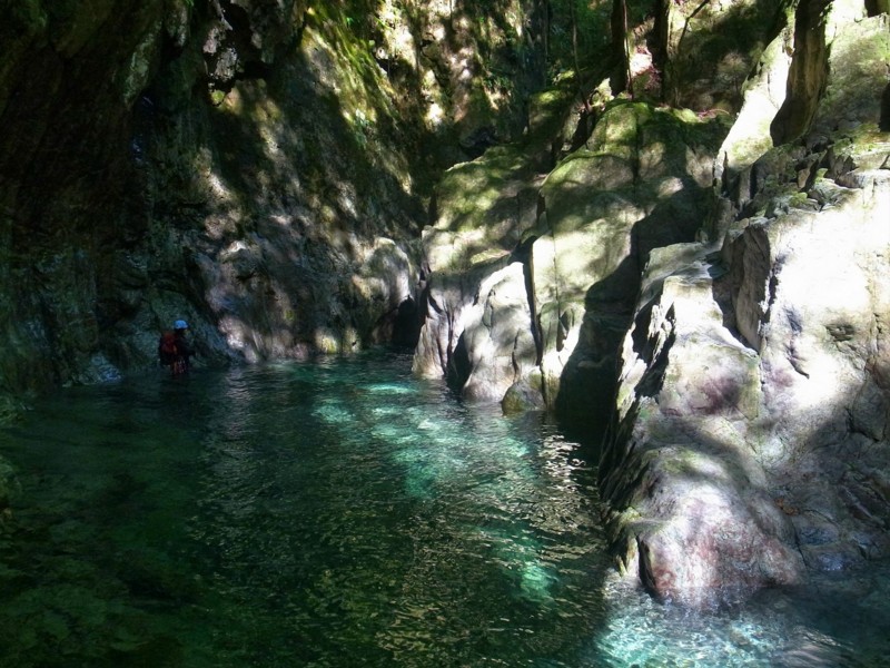 そこから先は現実味のない幻想的なゴルジュ空間が続き、圧倒されながらの遡行が続く。