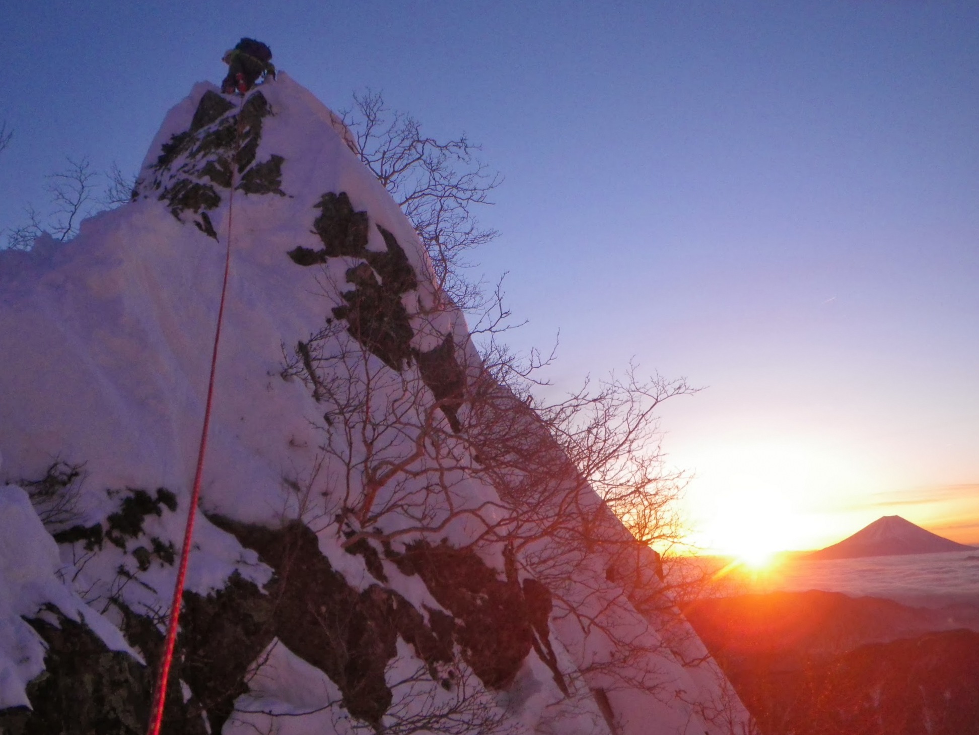 夕方から天気が回復し、北岳、富士山の展望が見事だった。