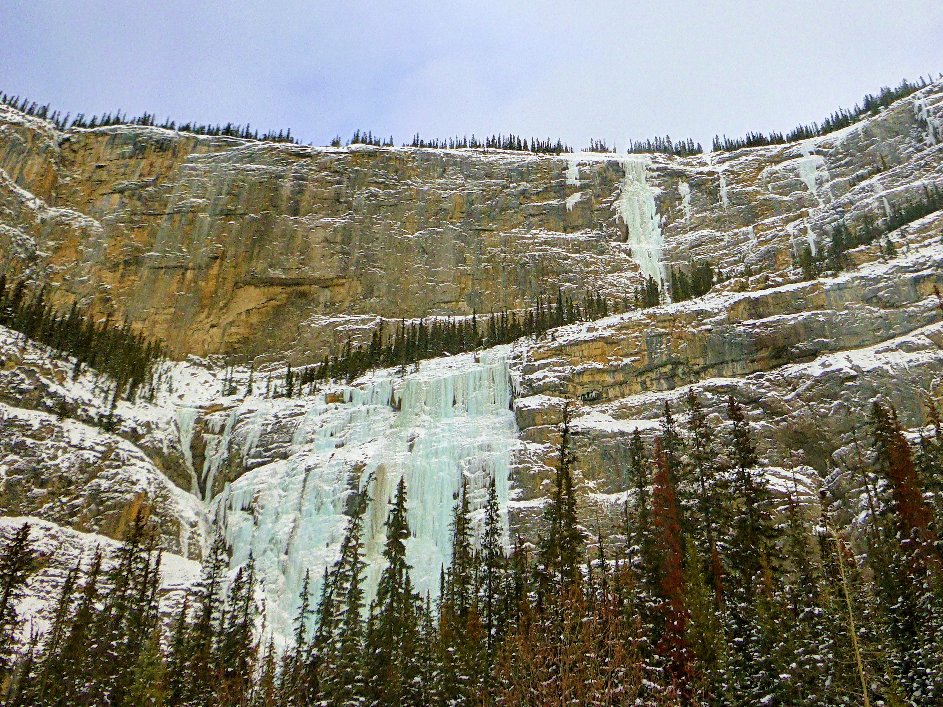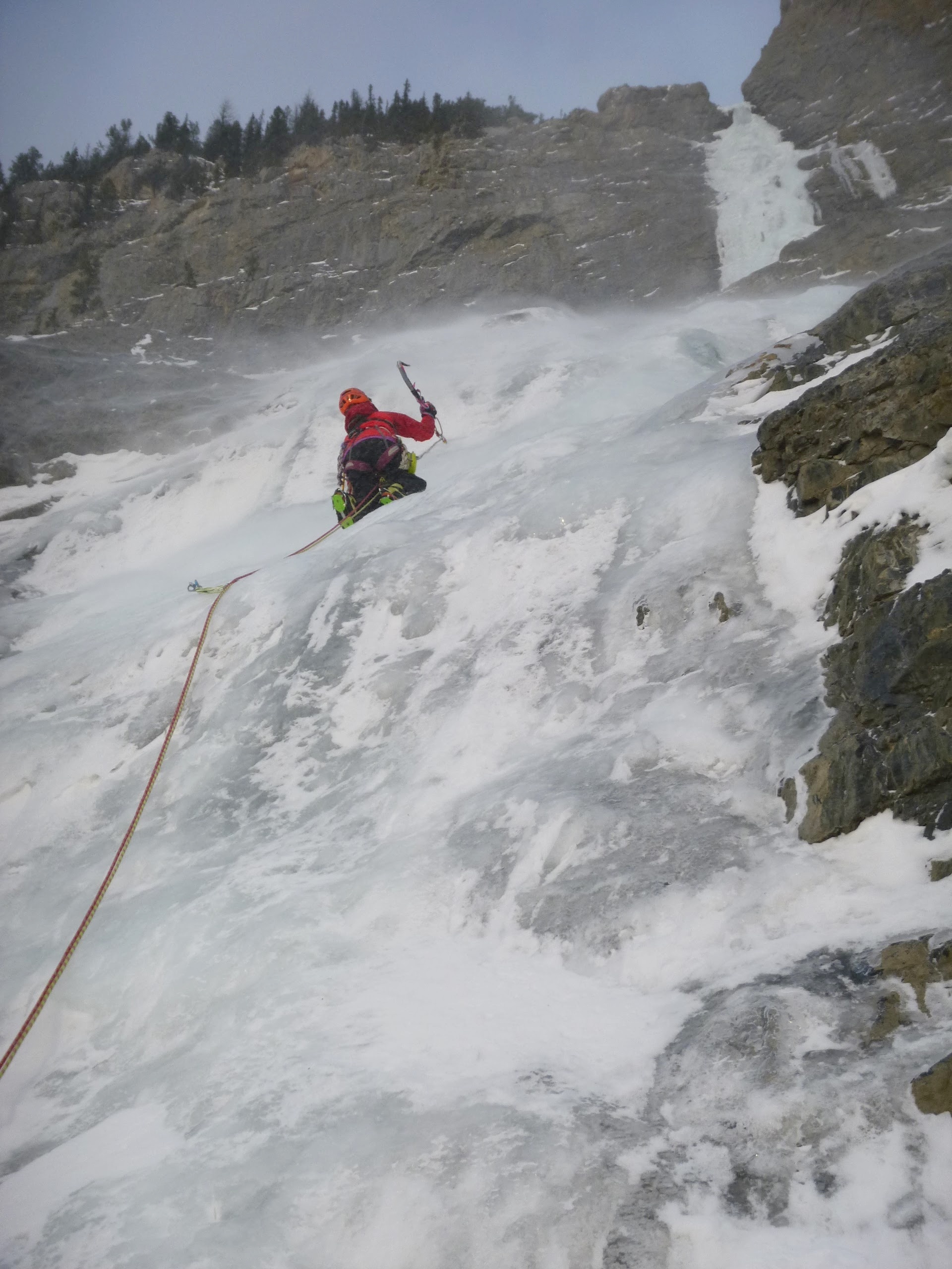 Banff近郊の Cascade Waerfall WI3 主要部150m へ