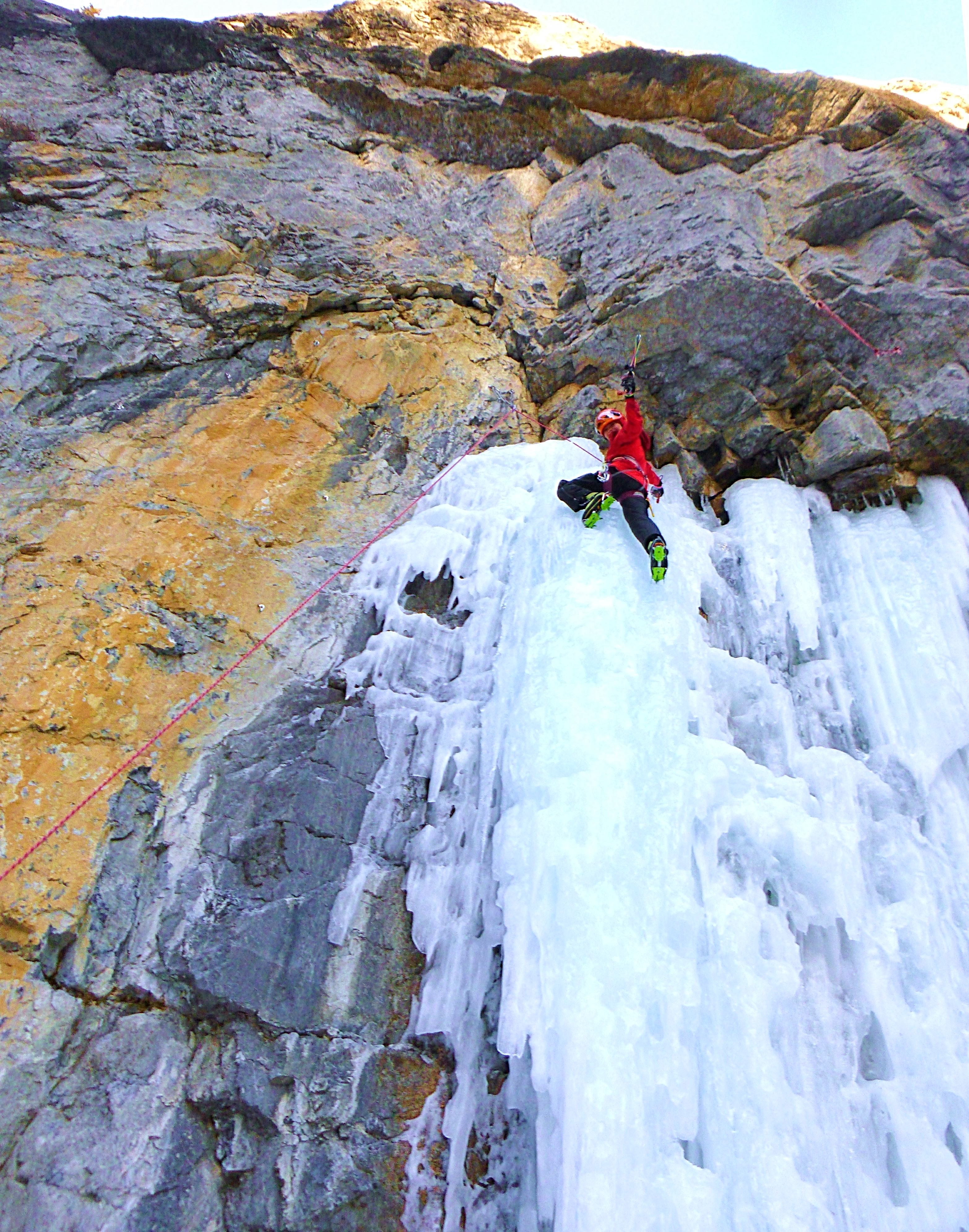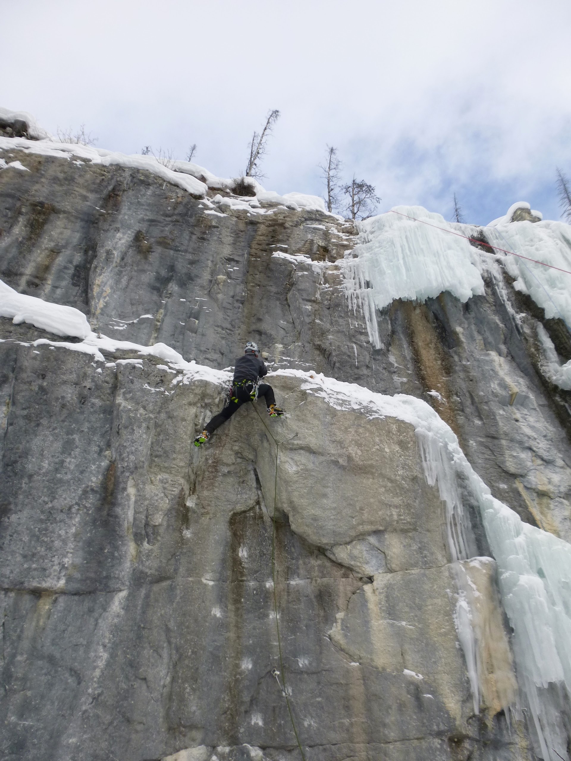 日本で言えば湯川の氷瀑のような沢筋の谷間だが、垂直のアイスルートの他にドライ~ミックスの好ルートが数多くあり、人気がある。