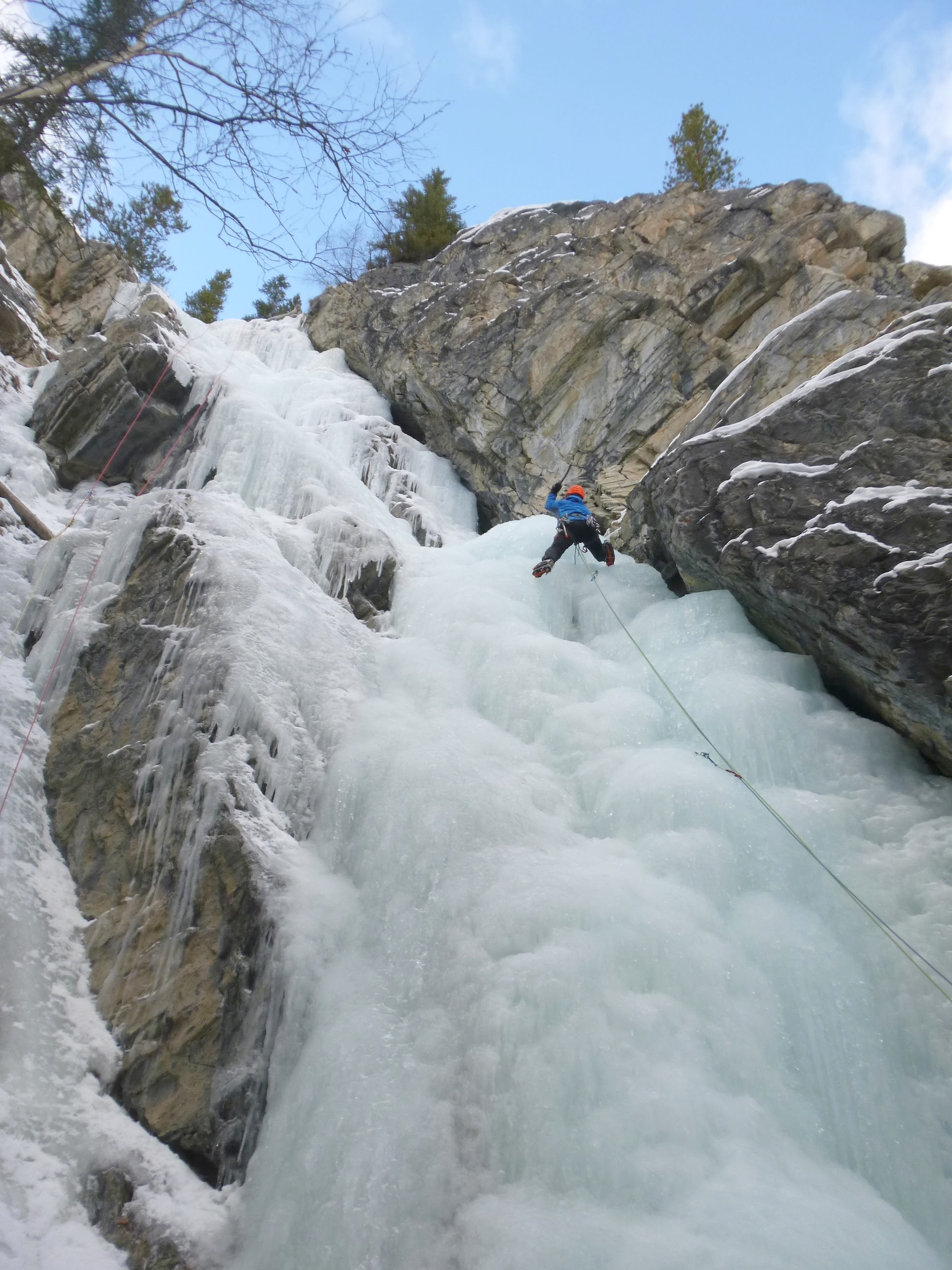 氷結は良好、3P目の大氷柱2本のうち右手は崩落。見下ろすと凍結した湖上には観光客のギャラリーが多数。ちょっとしたリゾート気分のクライミングとなった。