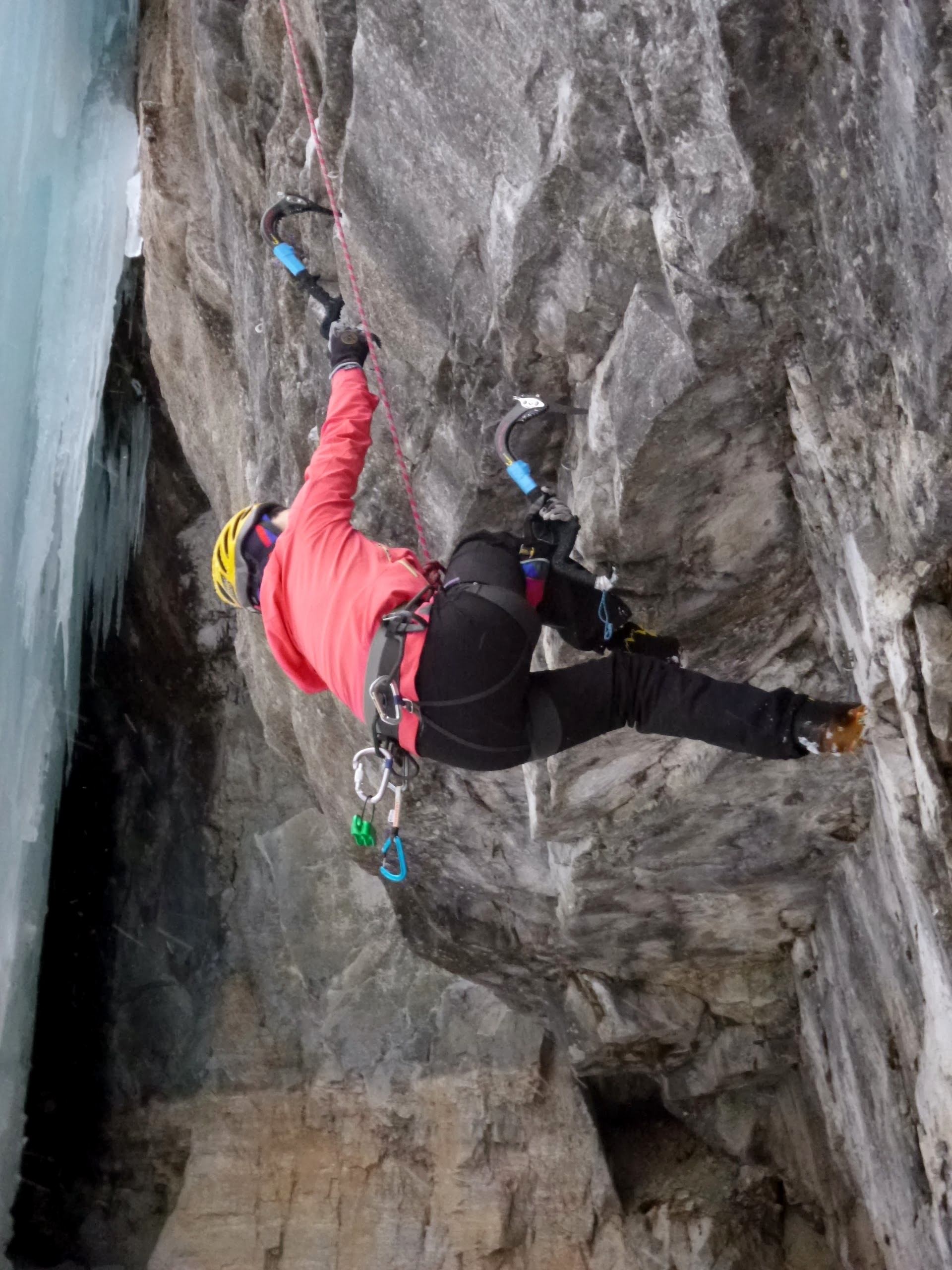 Swank M8- TR 岩壁のドライから懸垂氷柱に乗り移る。面白いが腕がパンプする