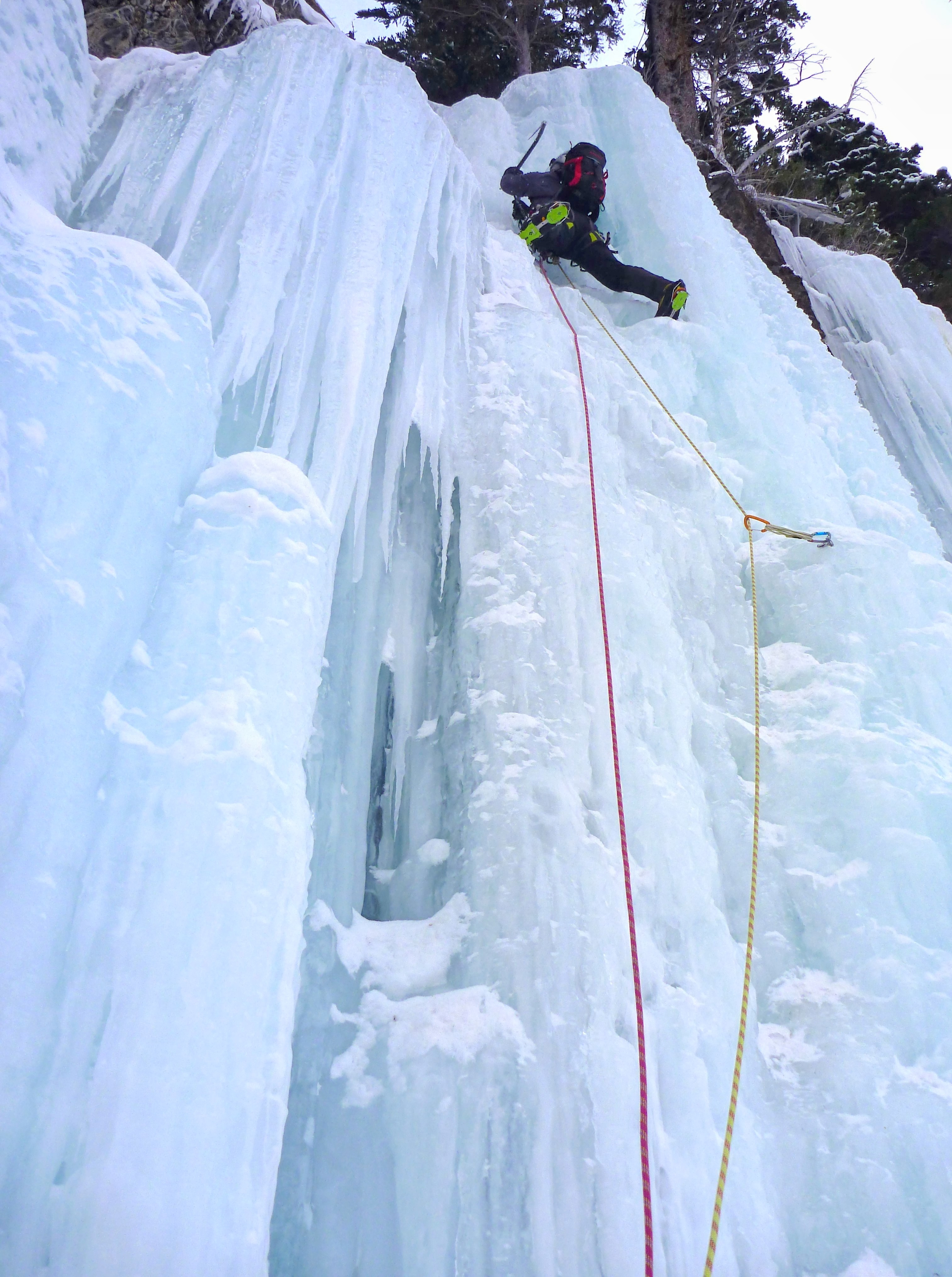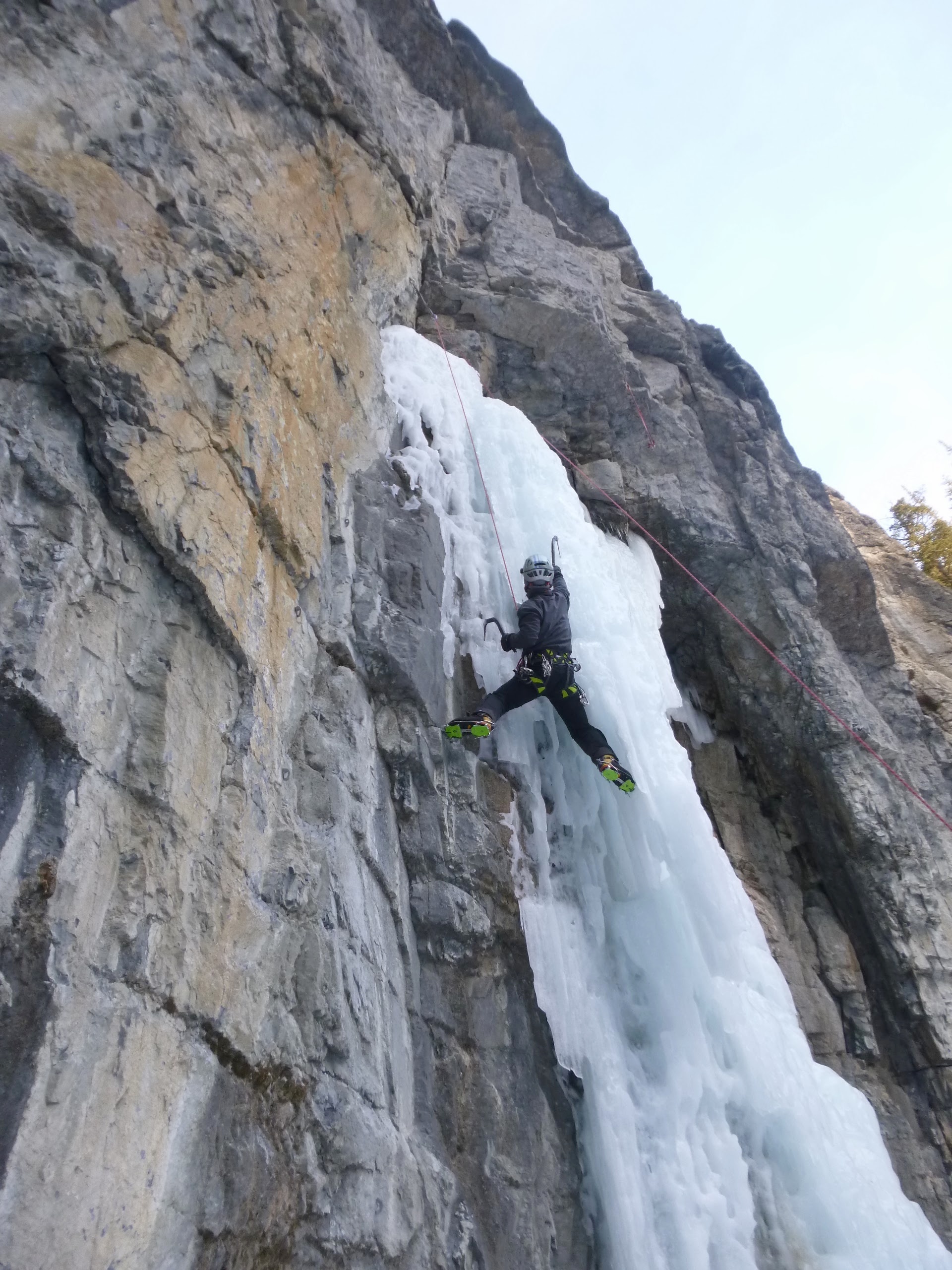 ビール名シリーズの Carlsberg を目指すも駐車場到着が遅れて隣に転進。下段と上段に分かれ、つなげると今回最長の氷瀑。3P目 50m は氷質が悪く、ラインを選びながらの登攀にはちょっと緊張した。