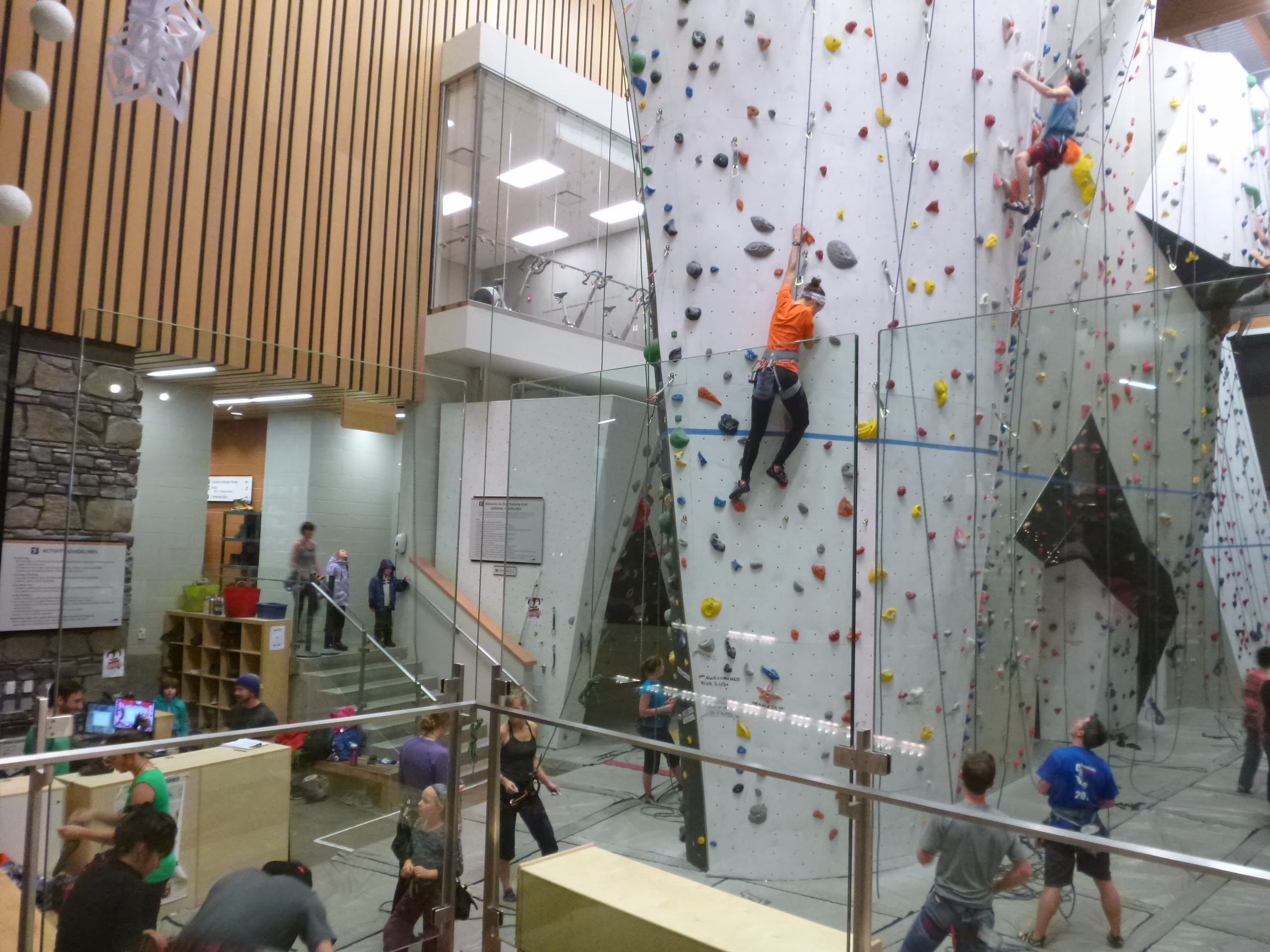 S原はI原さんとホステルから徒歩5分の Elevation Place へ。今年4月にオープンしたばかりの総合スポーツ施設で、屋内プールなどの他に本格的なクライミングジムがある。