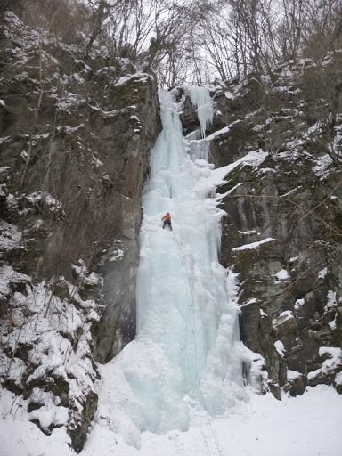 前夜上田市内で仮泊~8:00 峰の原スキー場~9:30大谷不動前~左岩壁エリア~右側壁ルート登攀~不動前(テン泊)