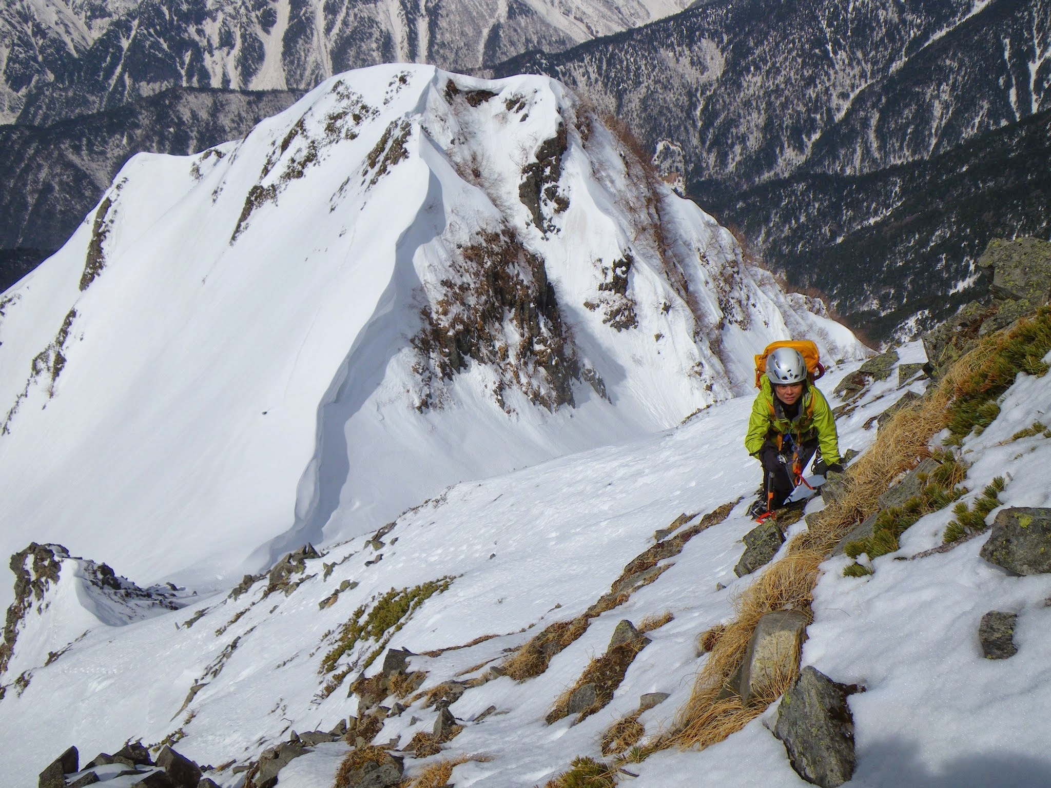 先日の30日が天候悪いということで3/29日ワンデーで北アルプスの西穂高西尾根にトライしてきました。