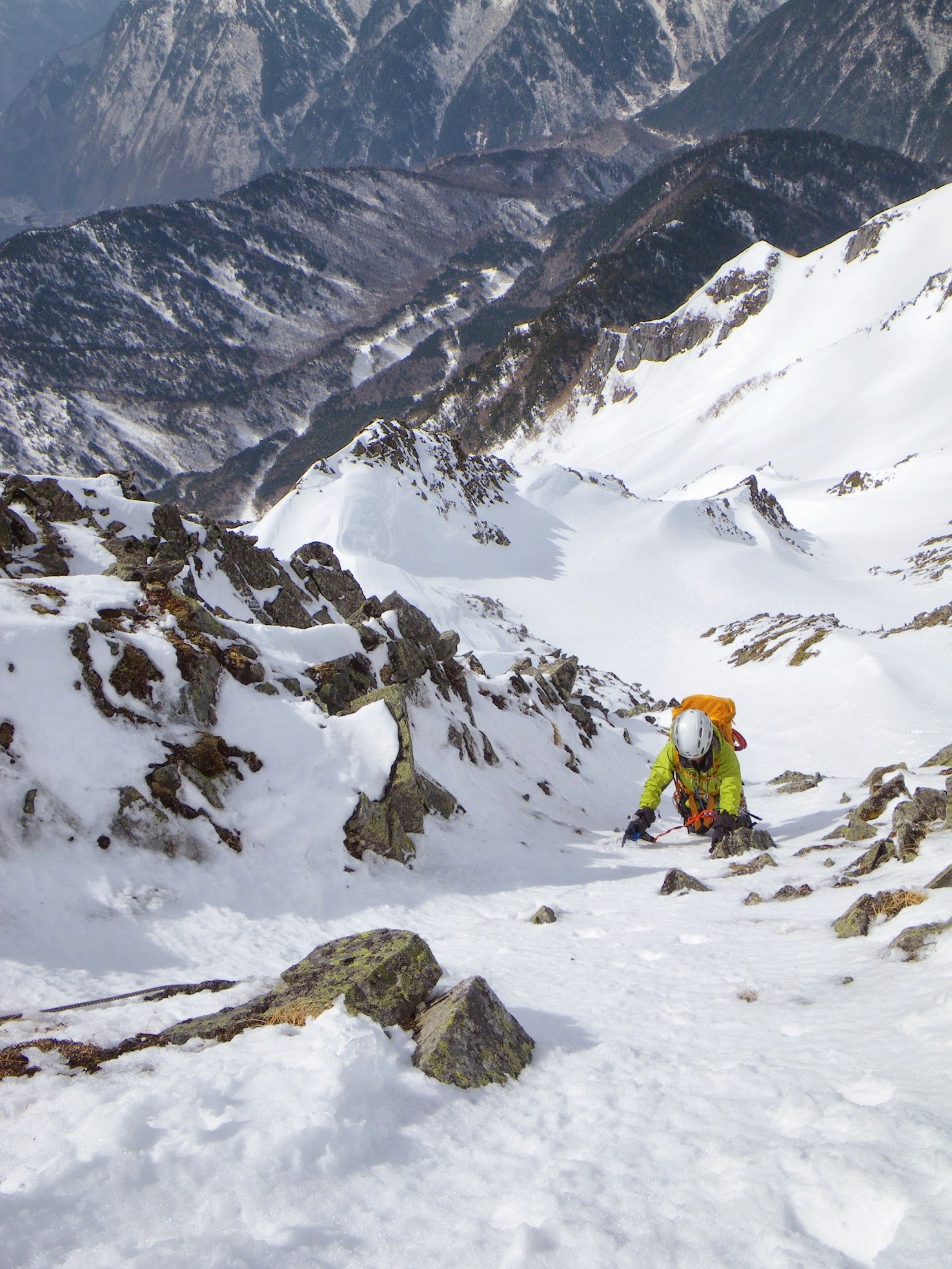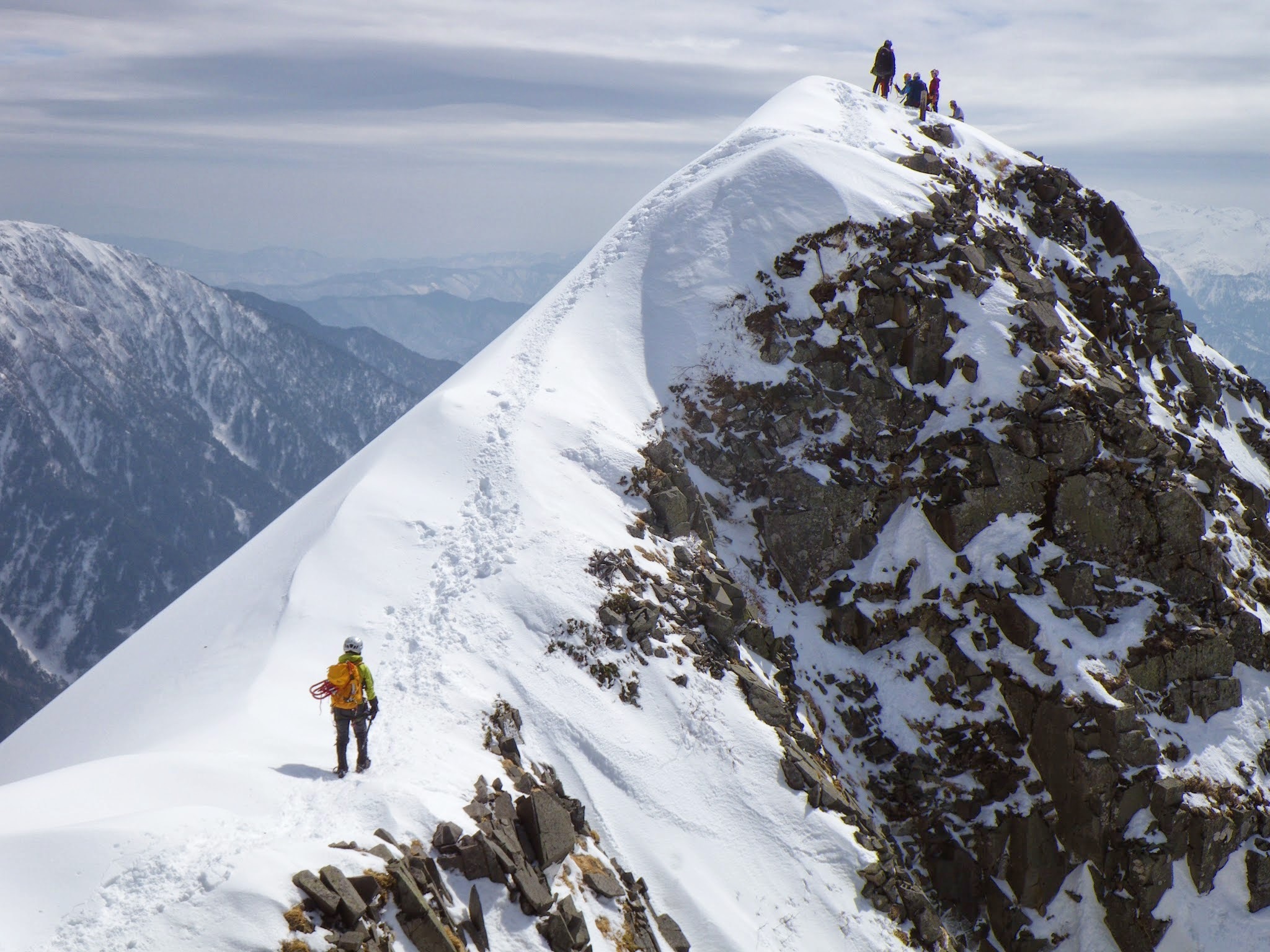 ルーファイすれば稜線沿いにうまい具合に雪をつなげて登ることができ、結局、ロープは一度も使わず。