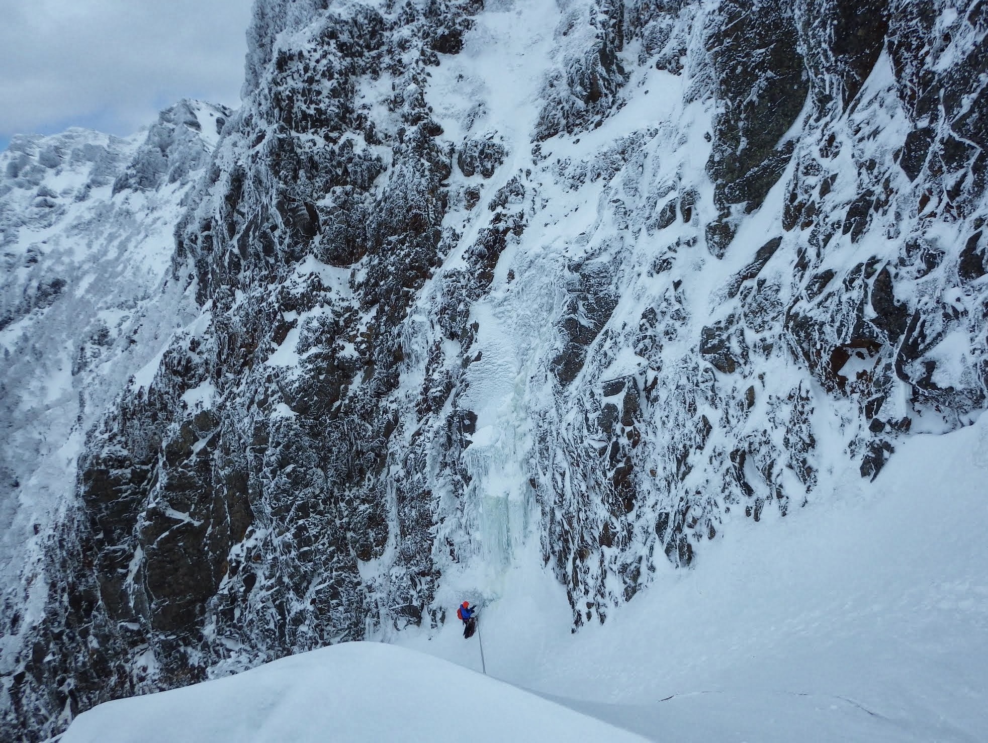 氷薄い、岩脆い、ランナー取れない、大変なルートでした。