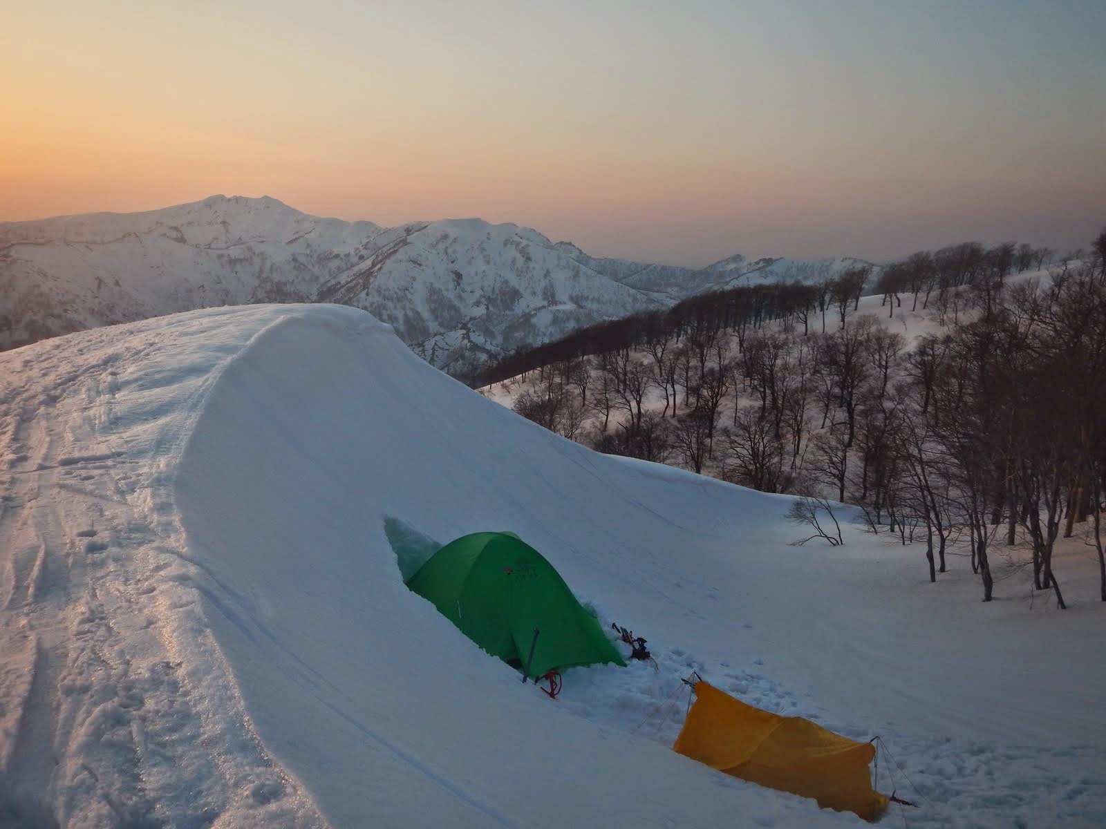 今回は日帰りも充分可能なルートだったけど、時間に余裕をもって宴会も楽しめて、朝一に静かなピークを堪能する、たまにはこういう雪山も良いなと思いました。