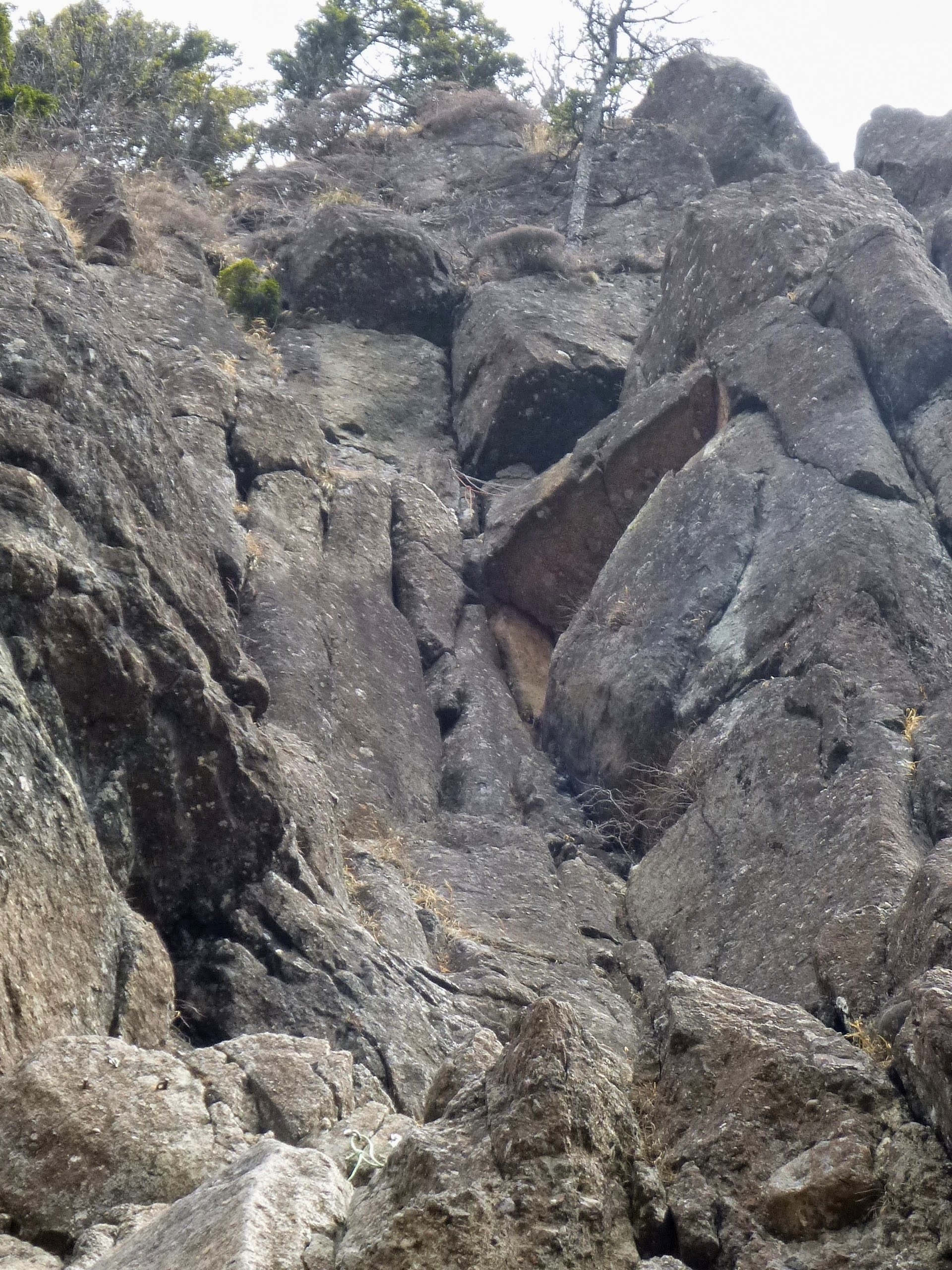 三ツ峠では珍しいチムニー登りだったのに、ただの明るい凹角に変身。