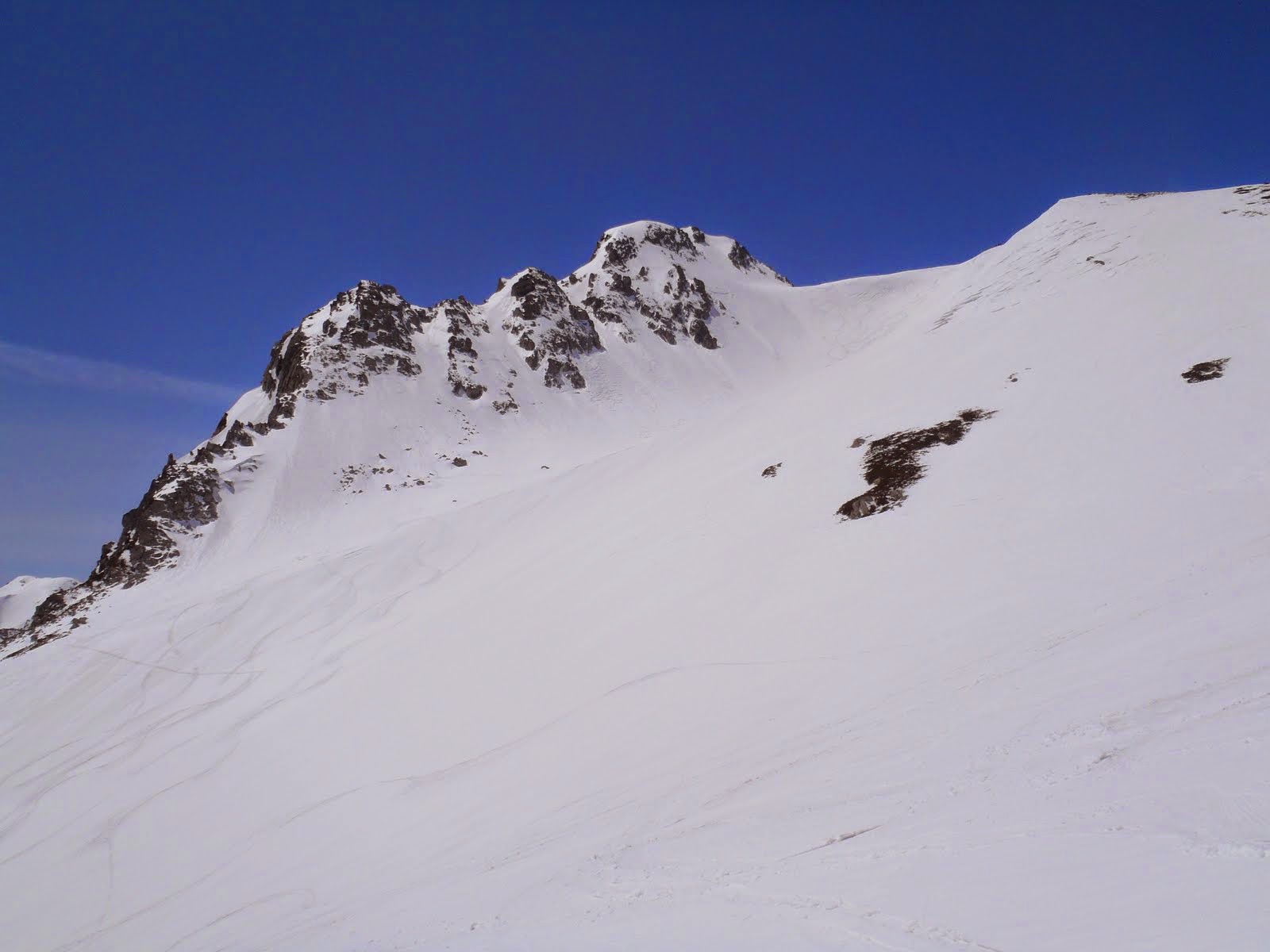 その後、富山大ピークに登り返し、竜王岳との間の東面カールを標高差300m程滑降。