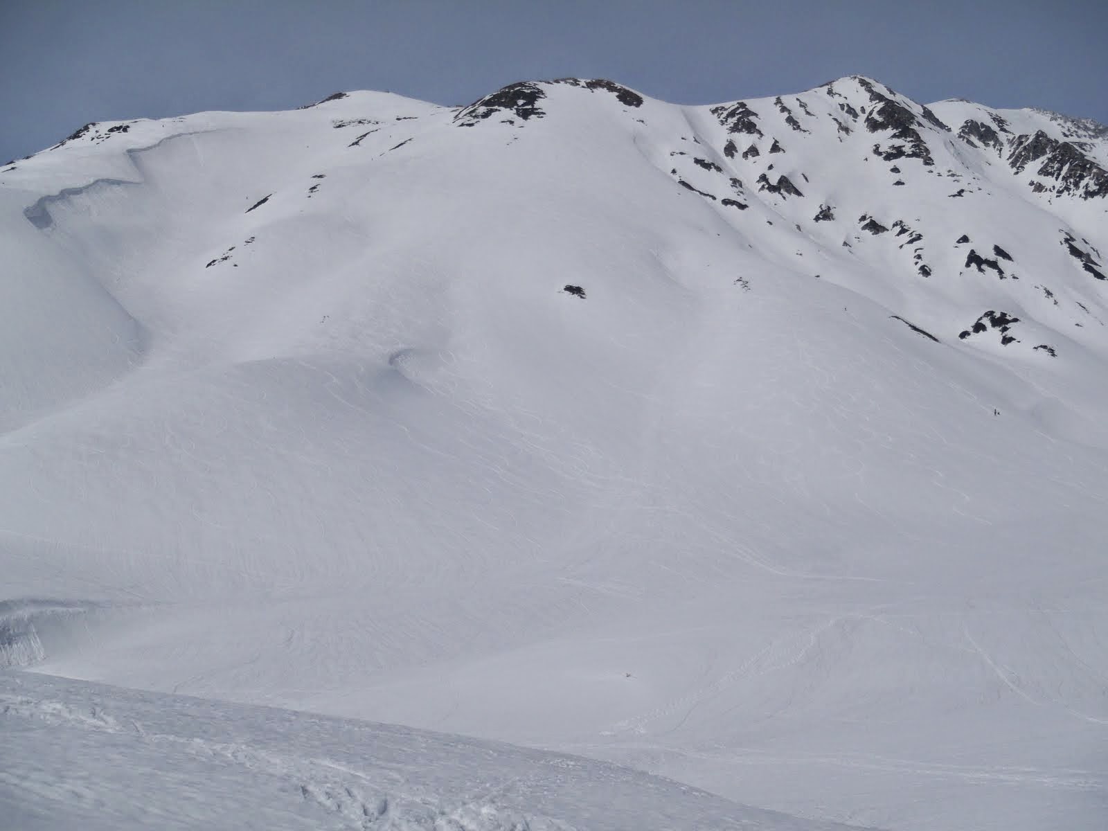 時間と体力が余ってるので、予定外だが剱御前小屋まで登り、雷鳥沢左岸尾根の熟成ザラメを「カイカ~ン」てな感じでひと滑り♪