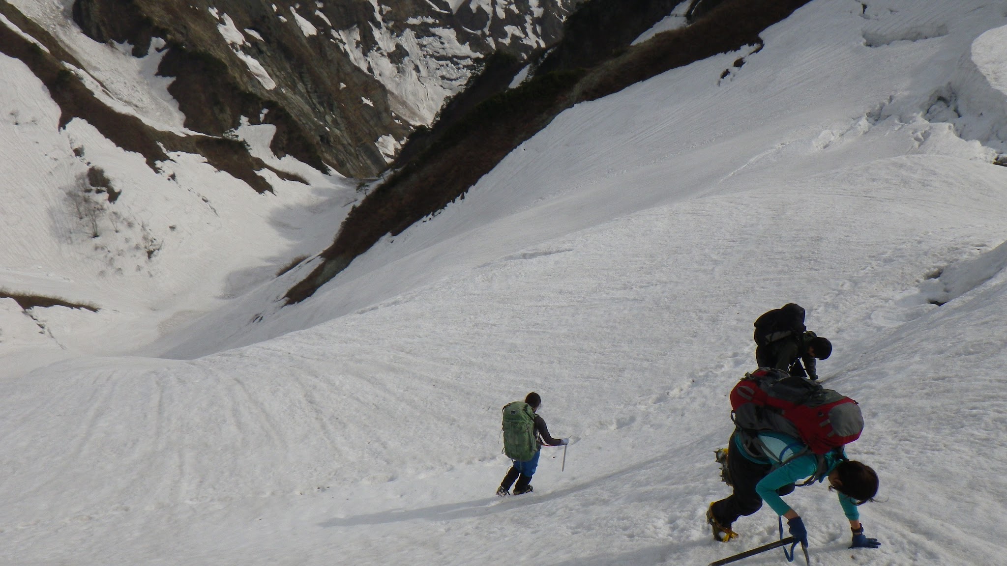 アイゼンワークについてトレーニングを積んでいないと、頂上直下の急斜面は非常に危険な箇所です。