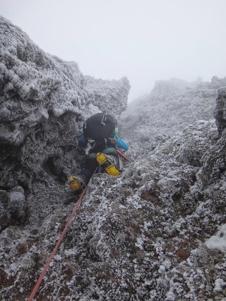 GW訓練の為にメンバーで泊り装備を背負ったまま、大同心大滝~大同心雲稜~ツェルトBP~小同心クラックと、アイスとミックスの継続登攀訓練に行ってきました。