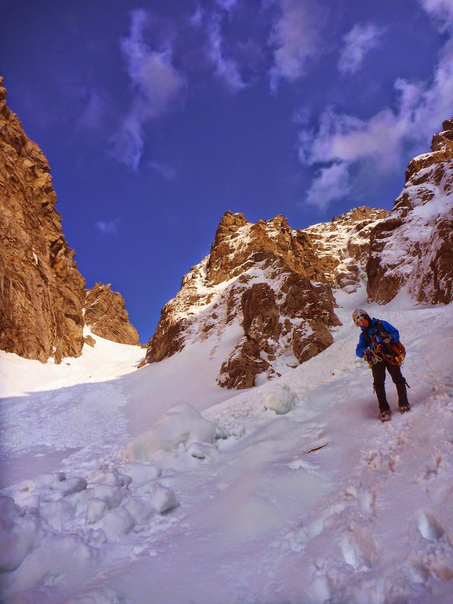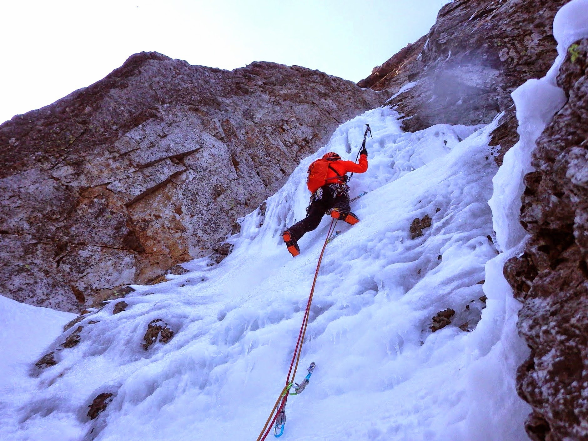なかなか悪い。右トラバリの後のちょいとミックス壁が恐い。ハンドホールドが使える。薄い氷を登ってスクリュービレイ。