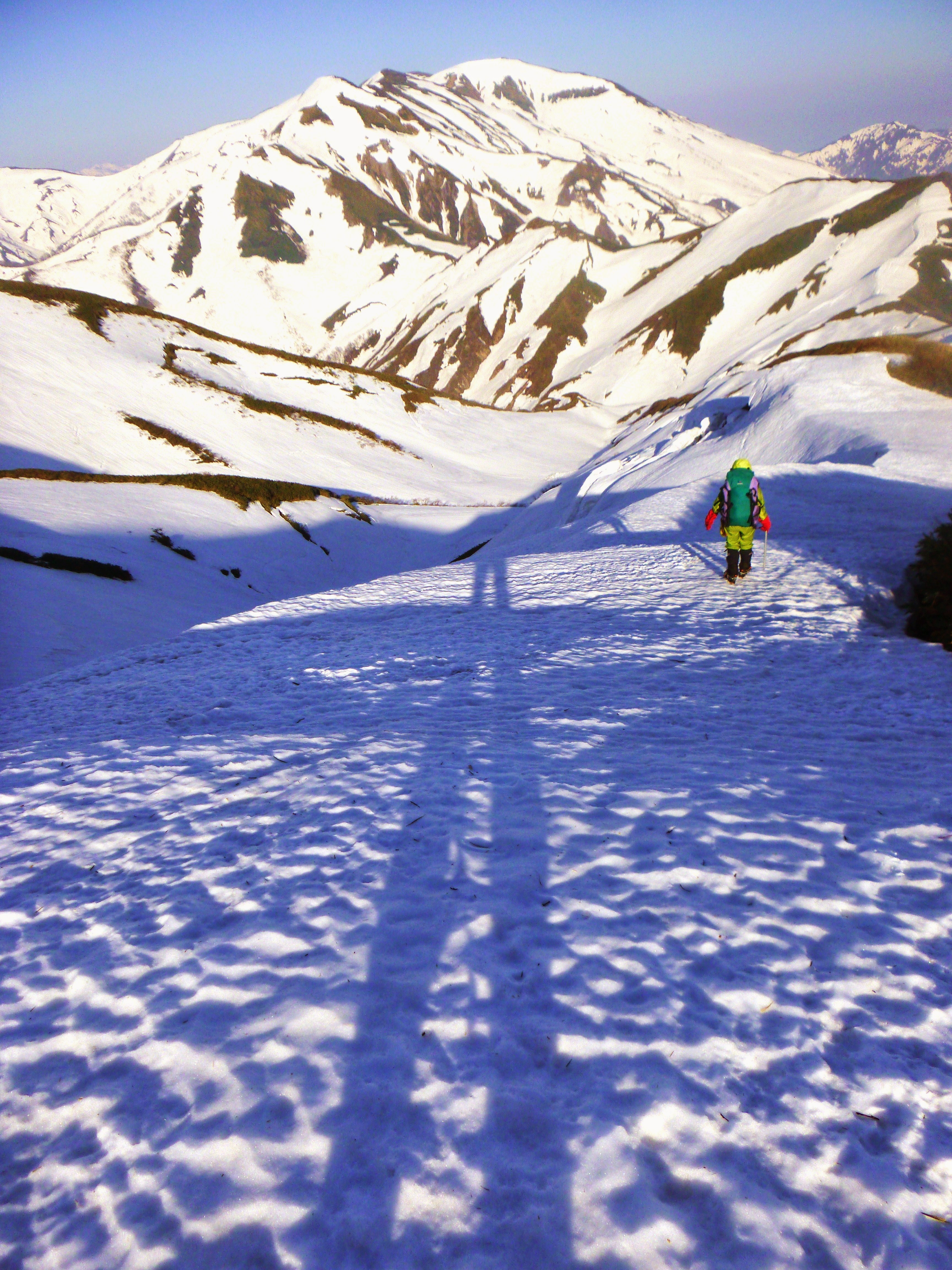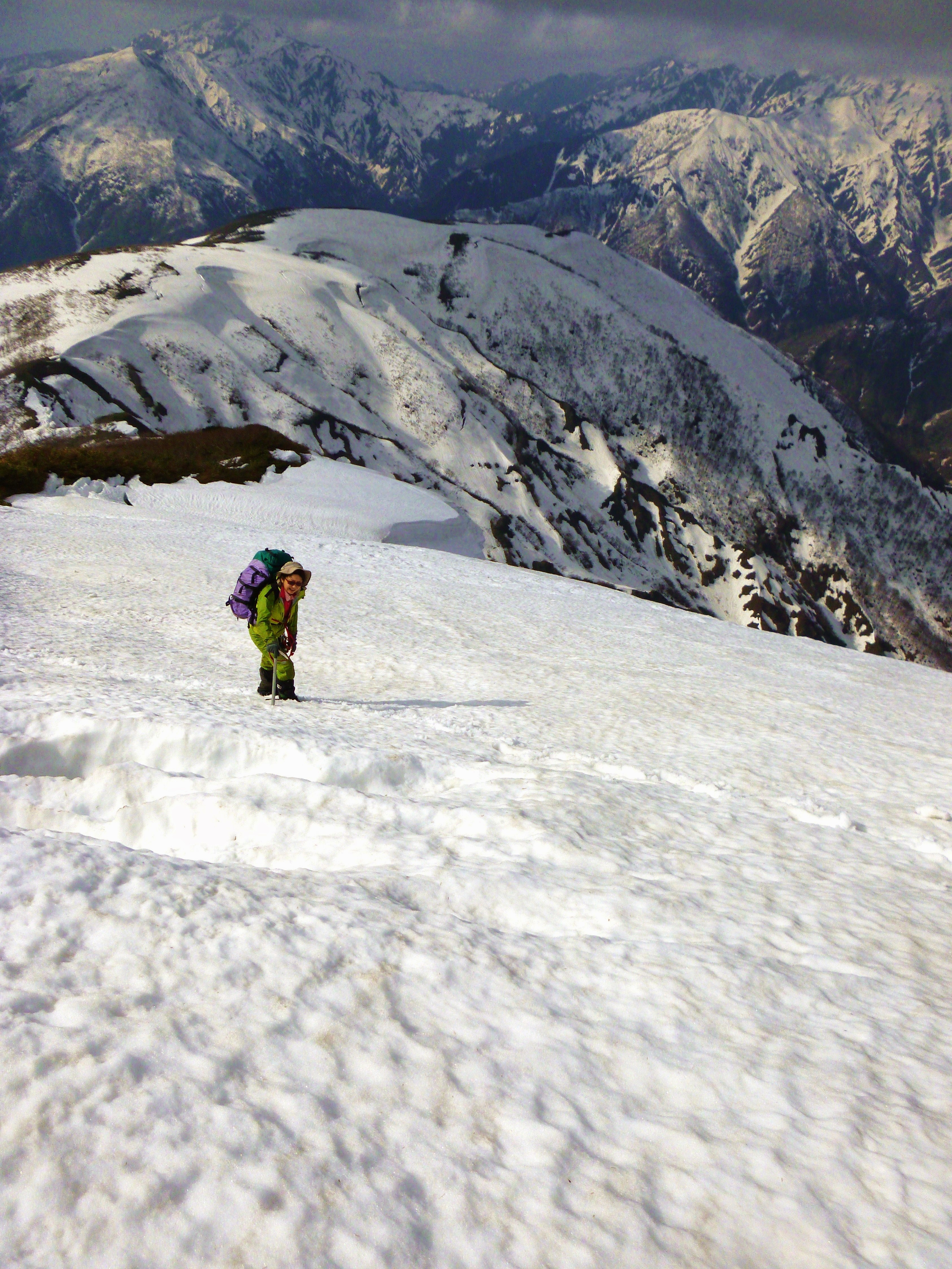 割れた雪面と痩せ尾根、そしてヤブヤブ・・・・