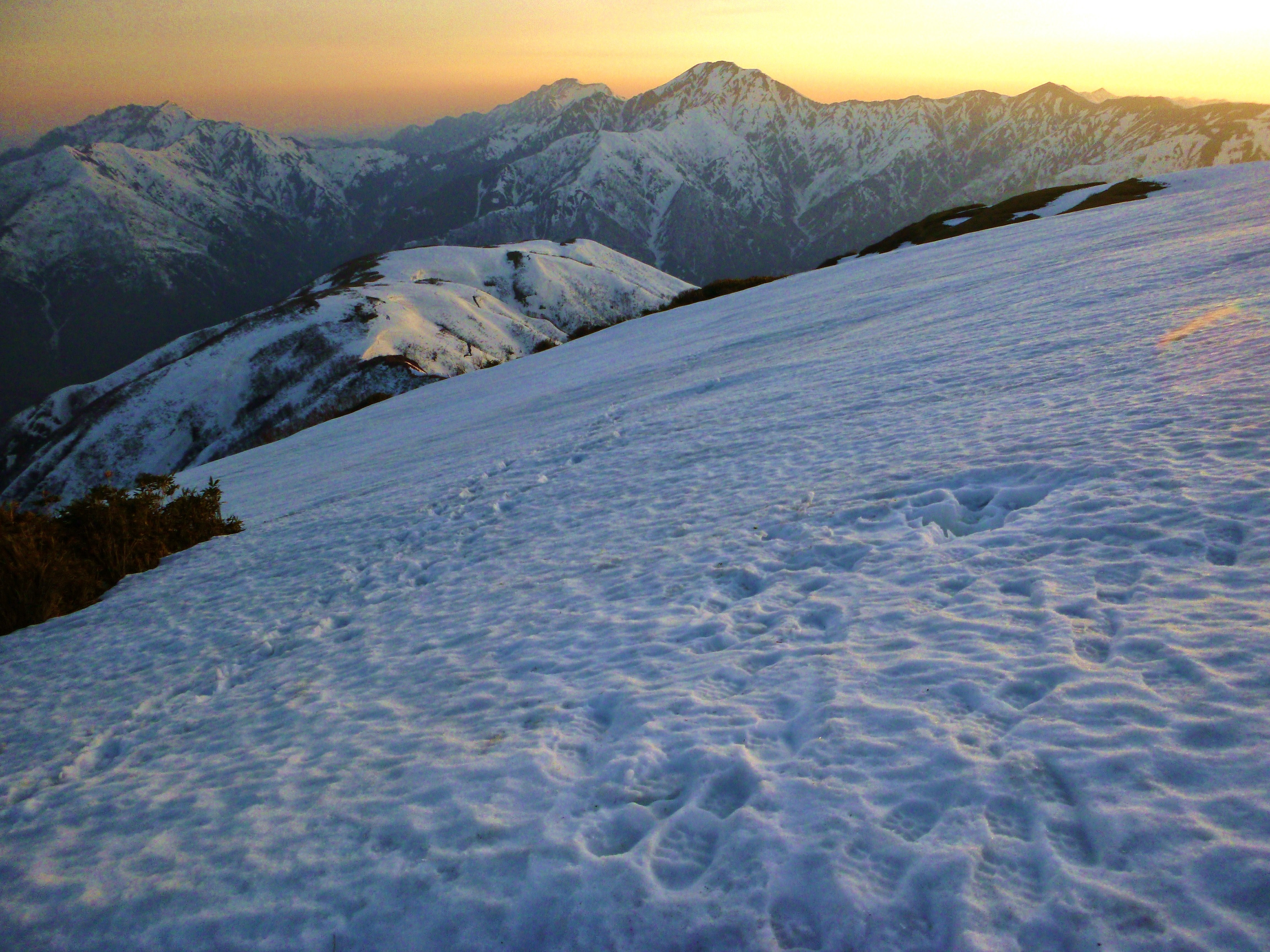 ・5/3(土):ネコブ山5:10~下津川山10:10~小沢岳11:30~1850m鞍部14:00
