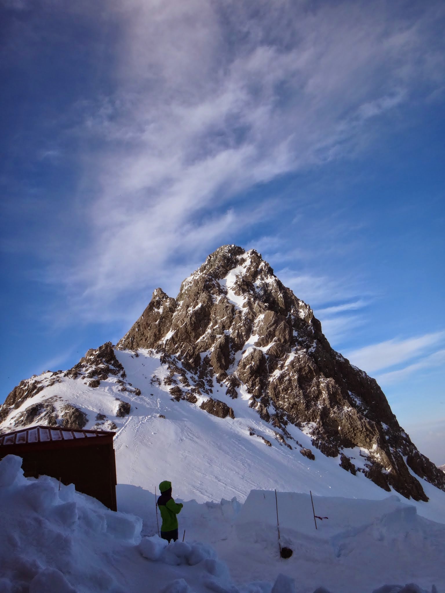 一旦、衣類を乾かすために小屋に退避する。テント代一人1000円だから、遠慮なくストーブに当たる。明日の予報は天気はいいが朝方風が10mくらいあるらしい。気温はマイナス3度。風が問題だ。