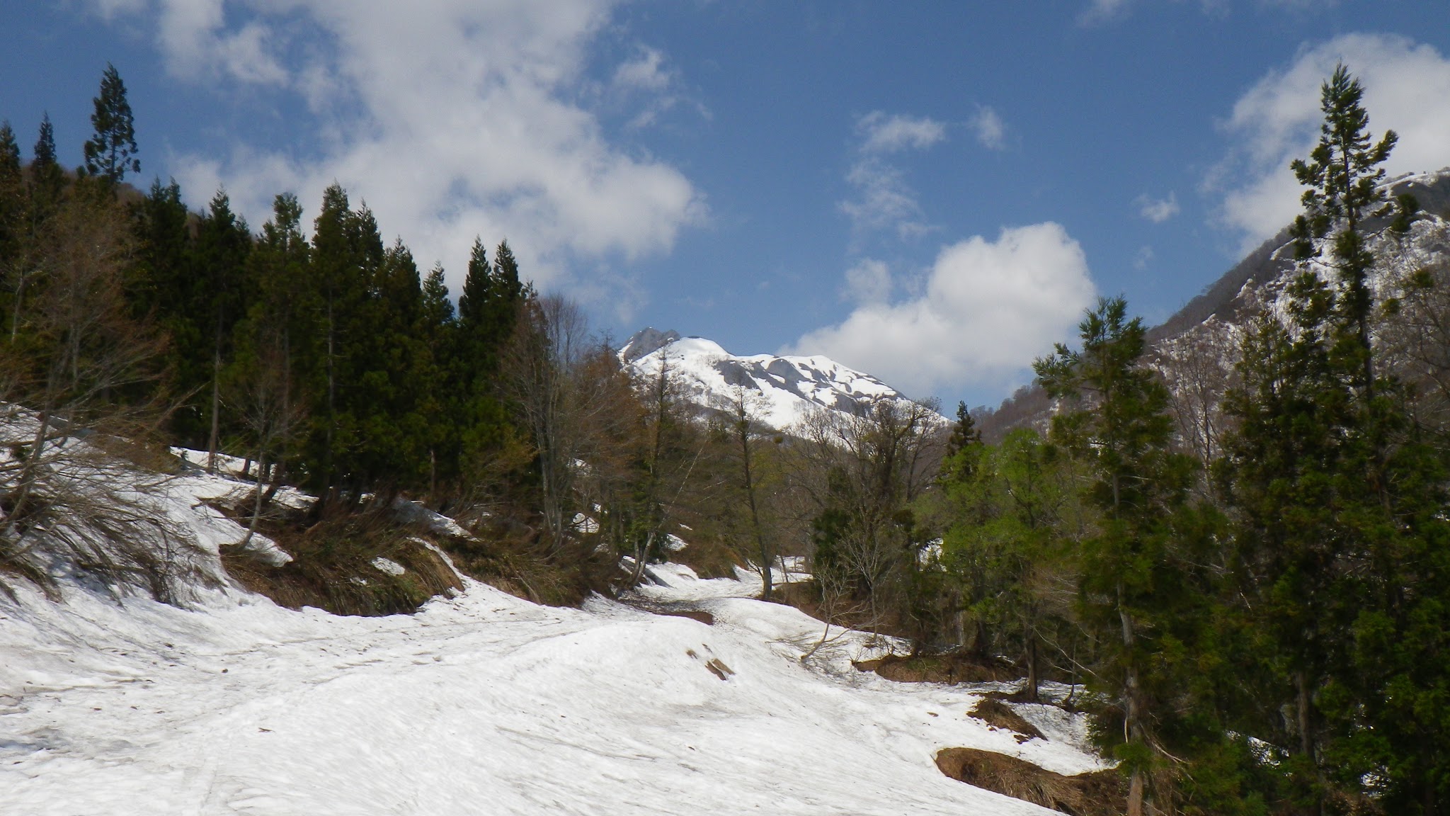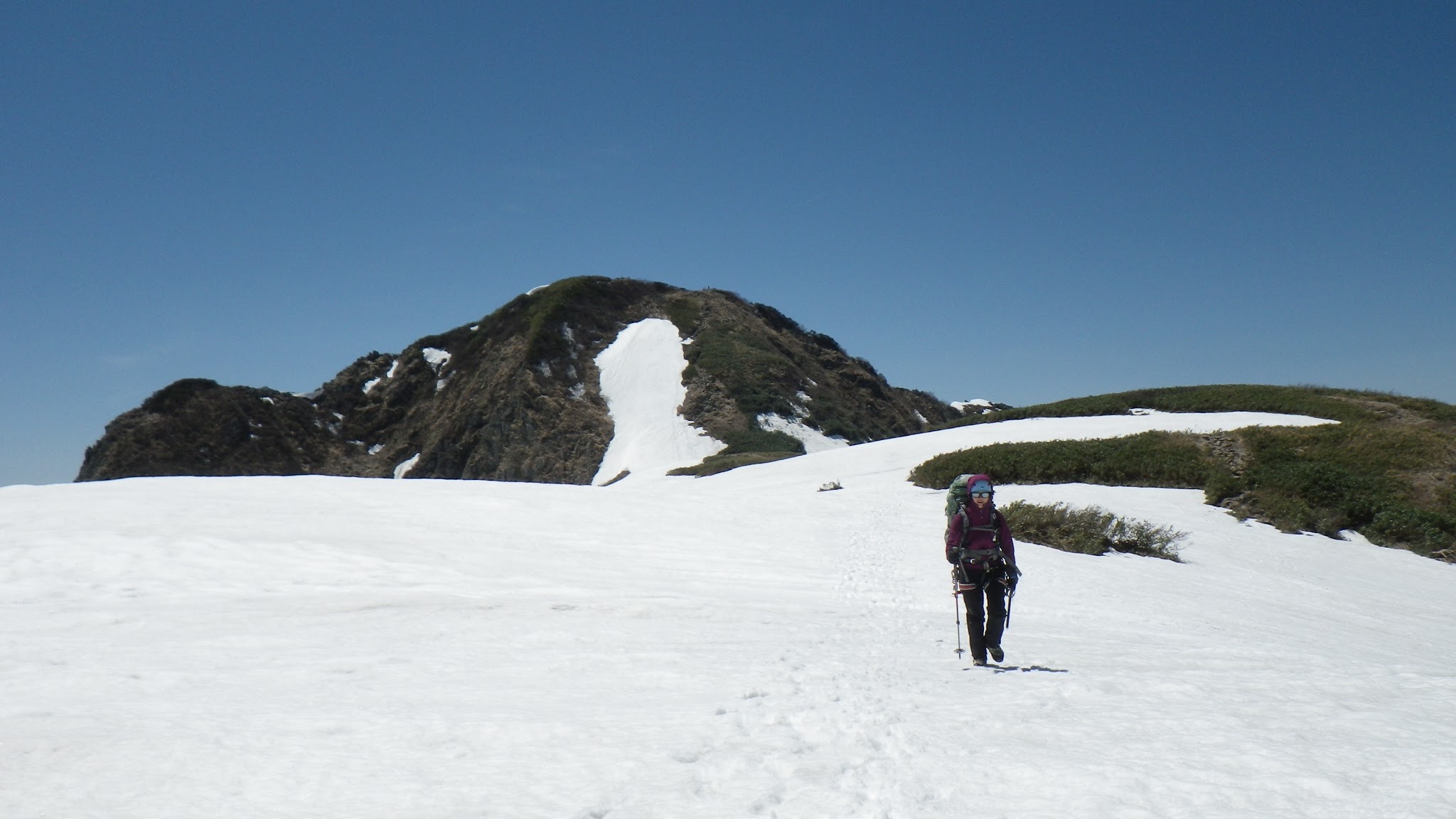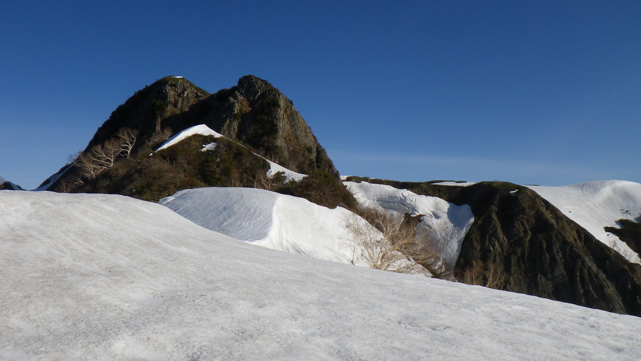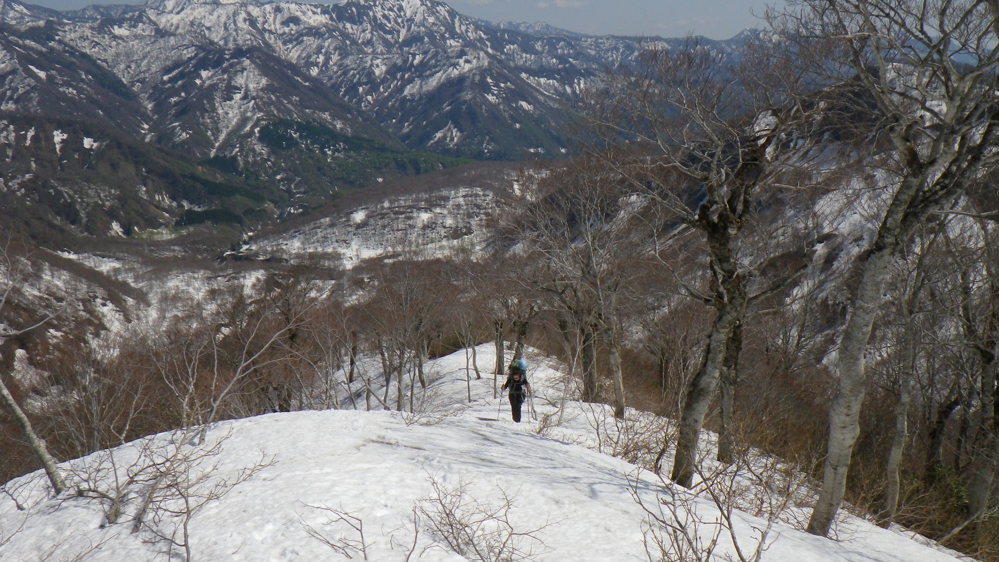 雪稜はすでにこの時期ヤブ稜だ。それもまた良し。
