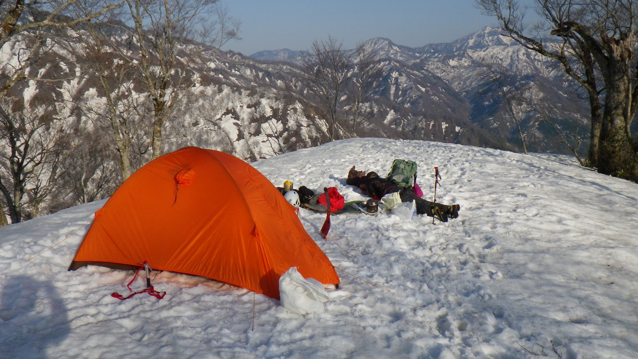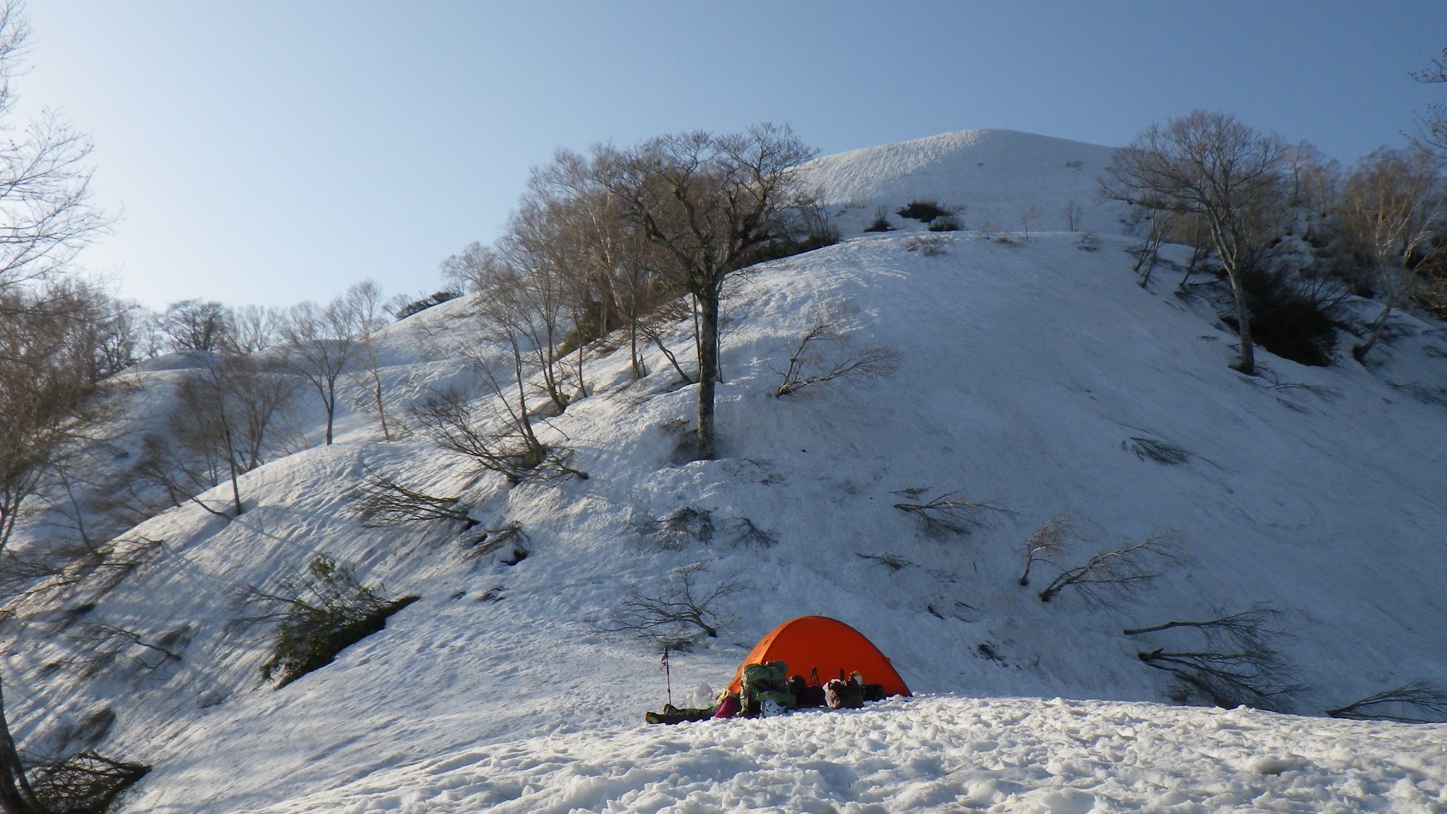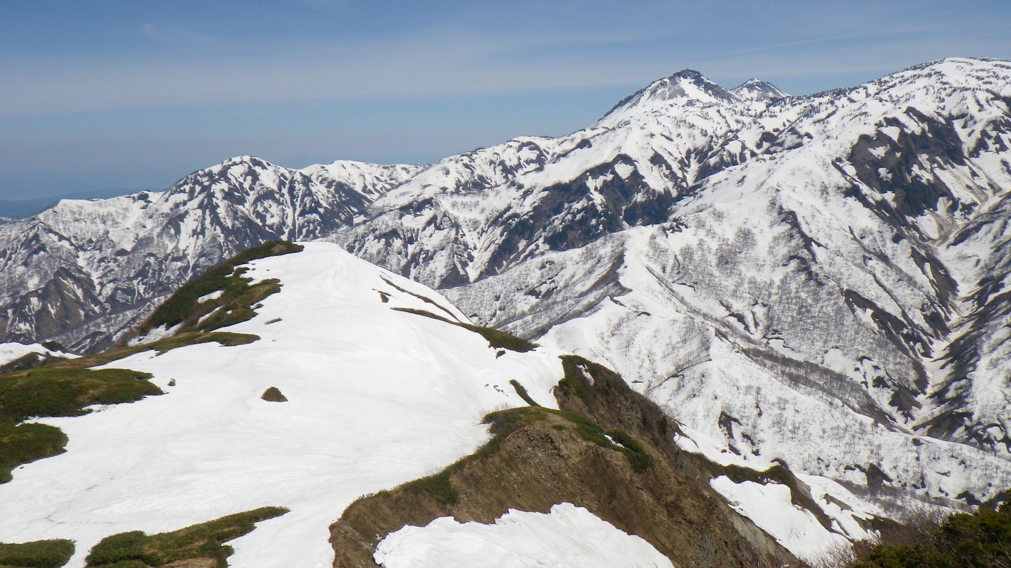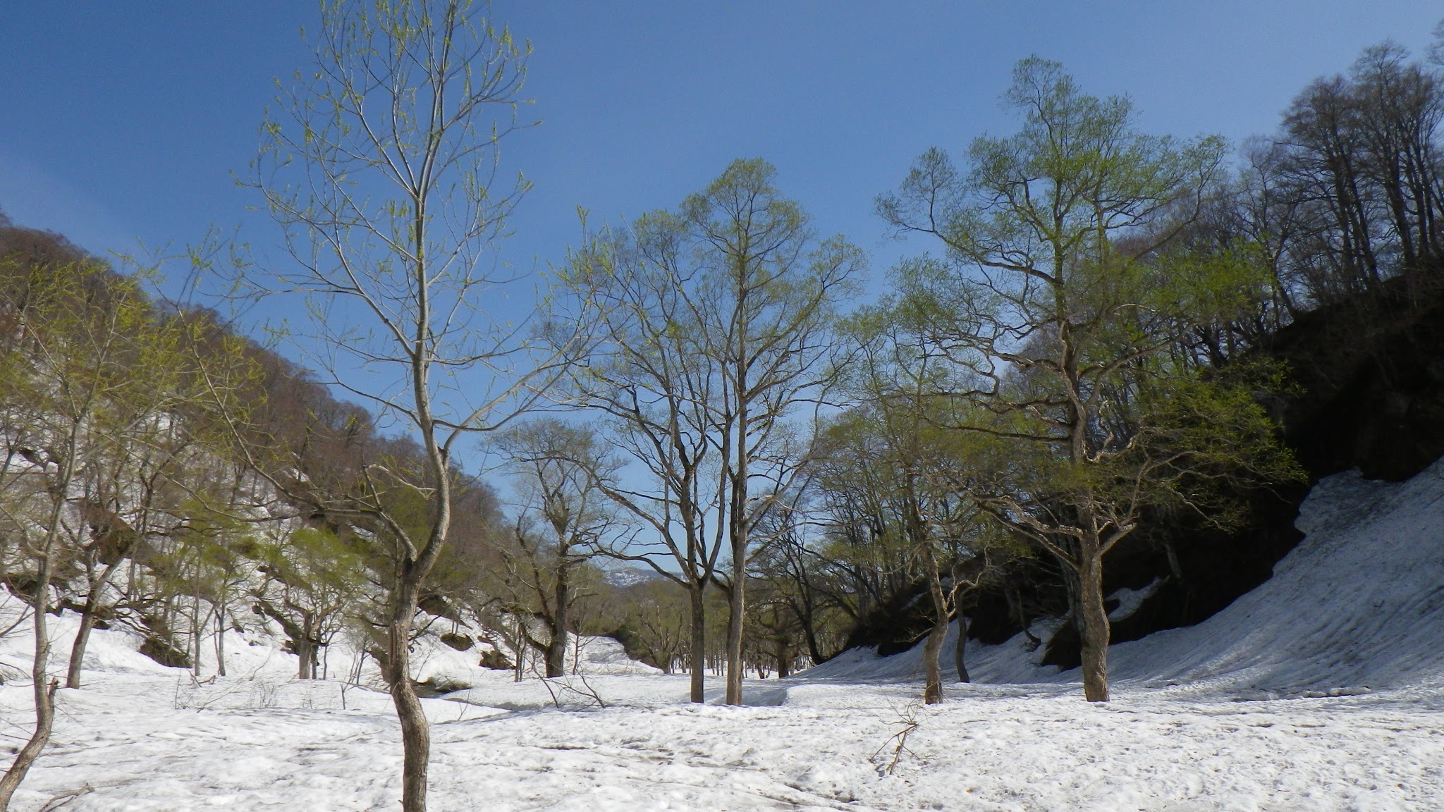 雪稜はすでにこの時期ヤブ稜だ。それもまた良し。