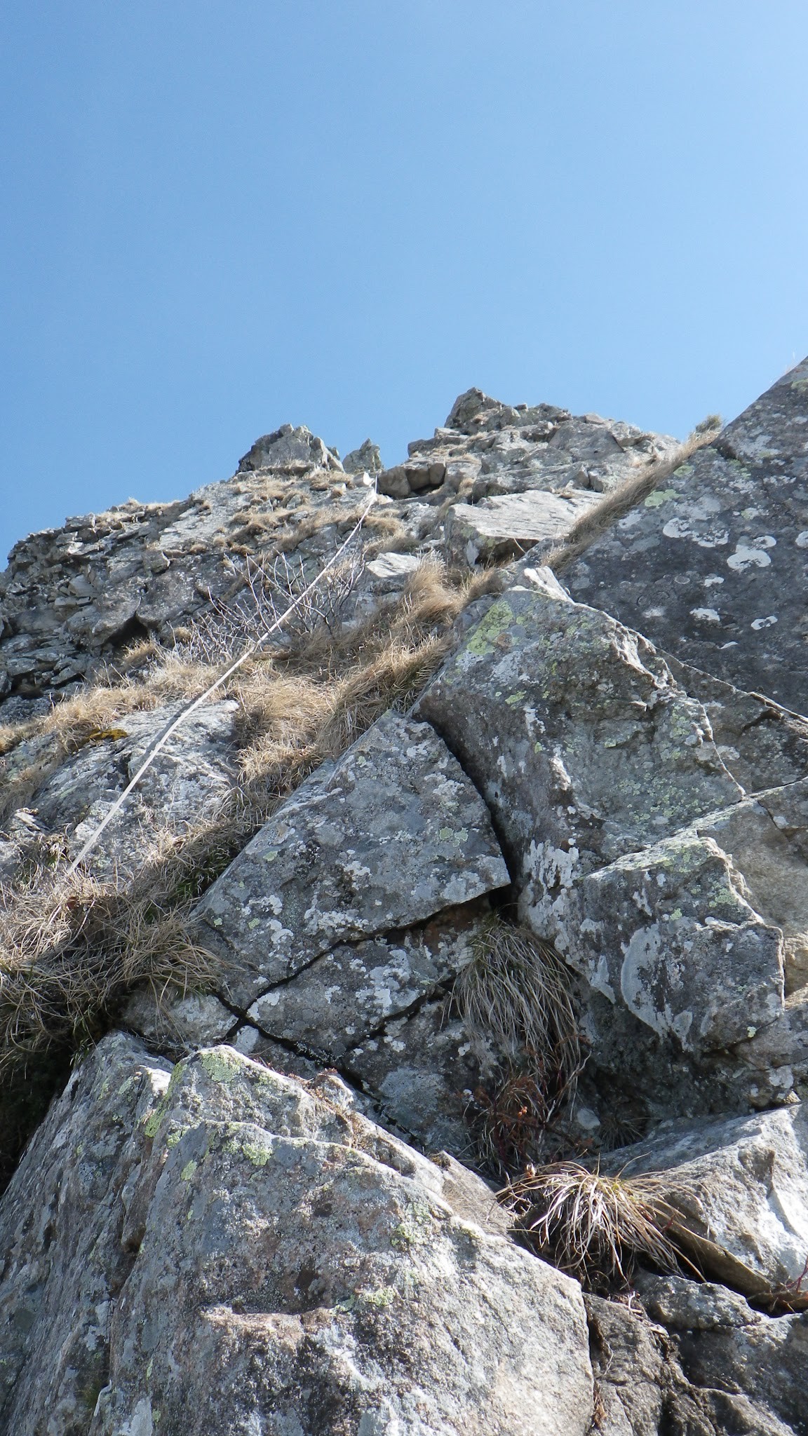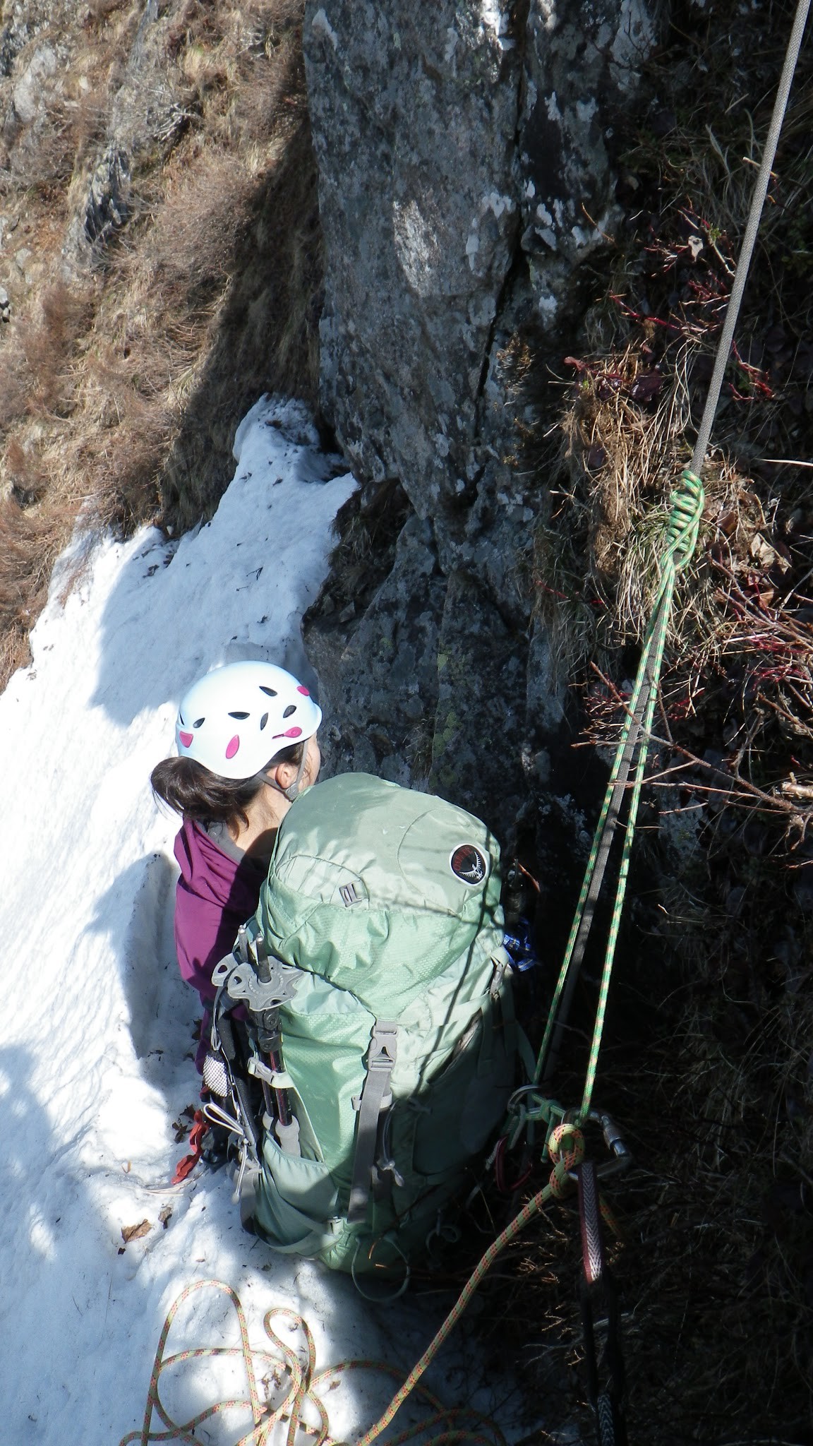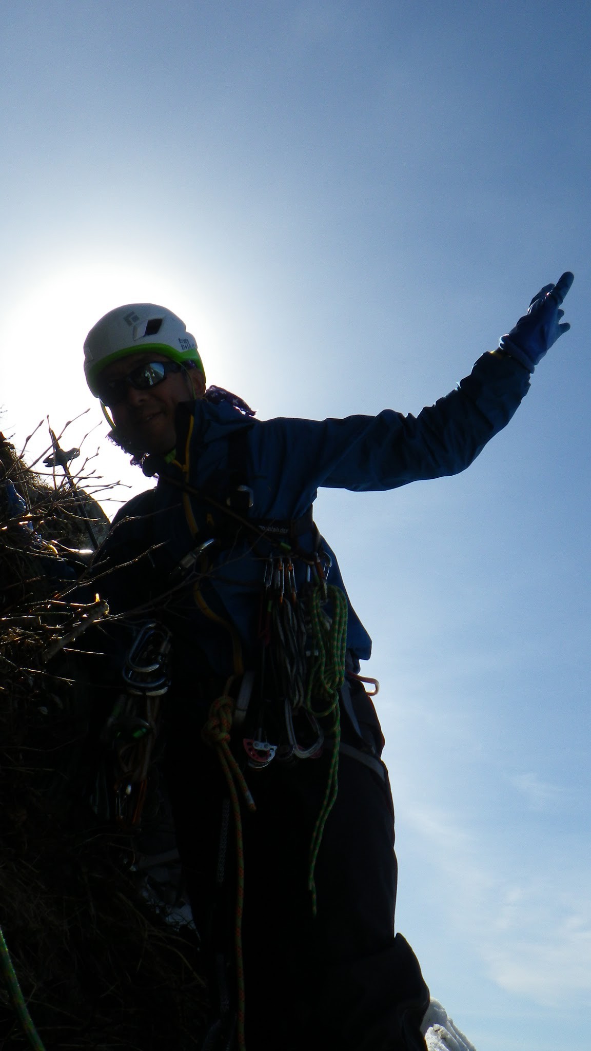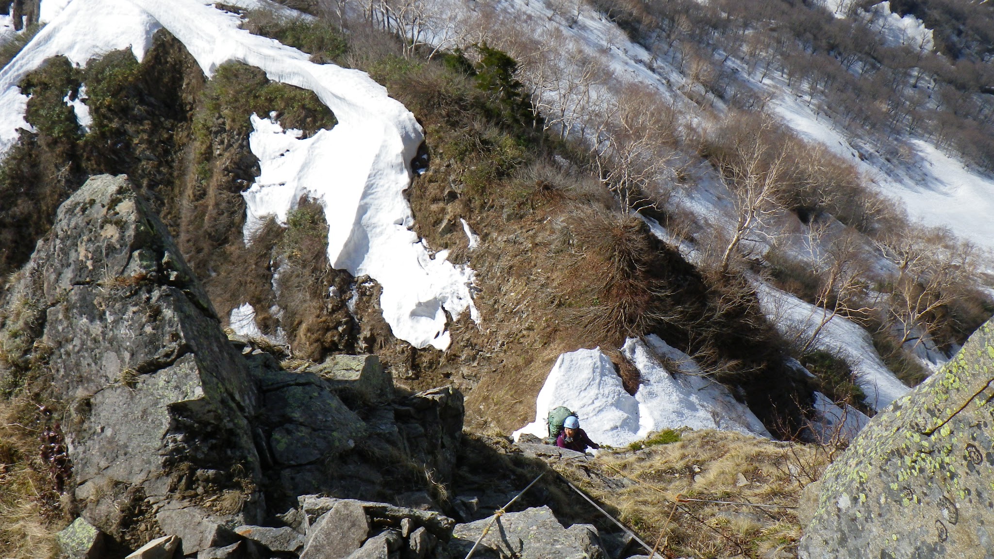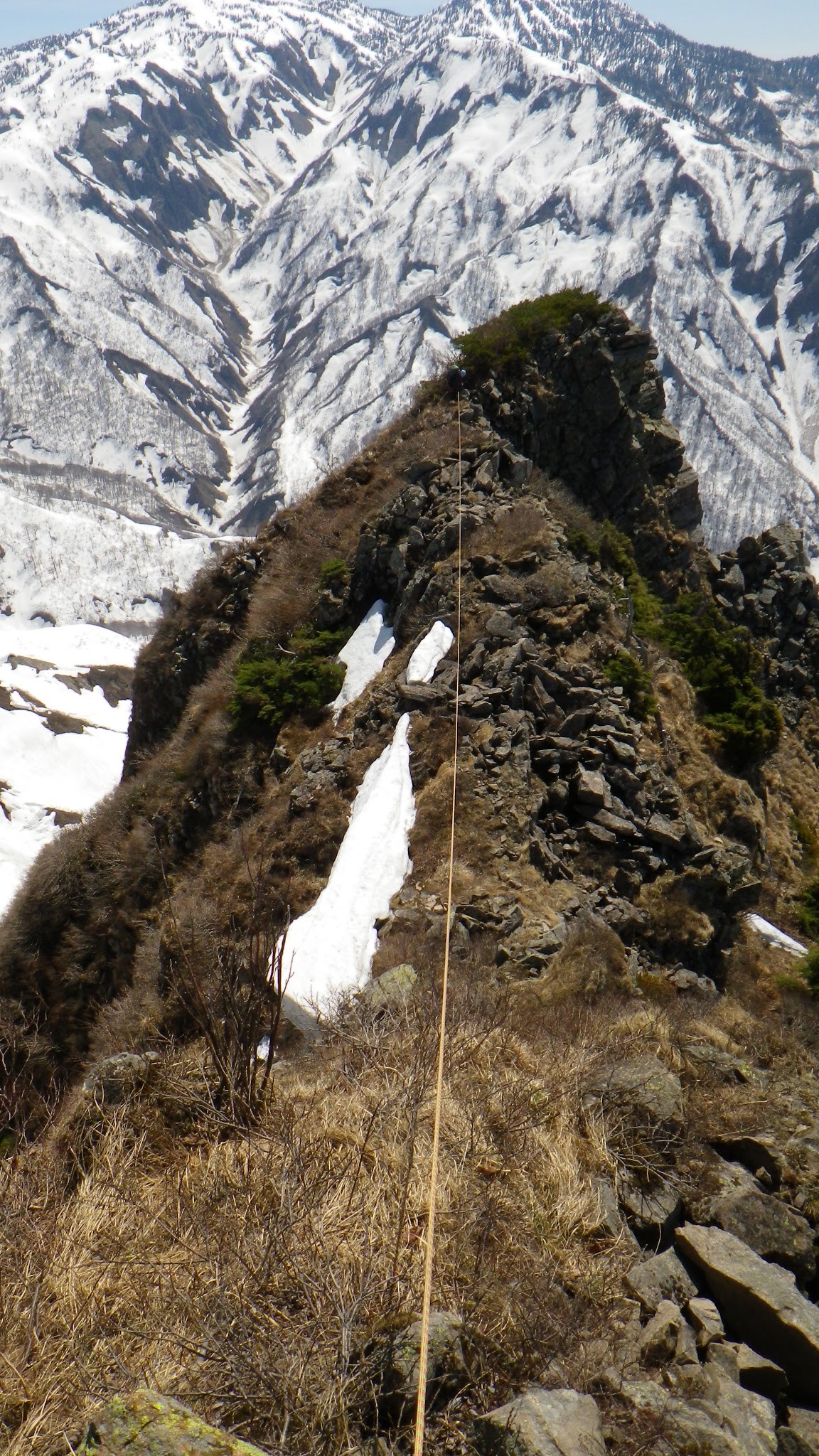 ロープ2ピッチのあと、ヤブ稜も少しロープを引く。これは雪がついてるといいだろうなぁ。