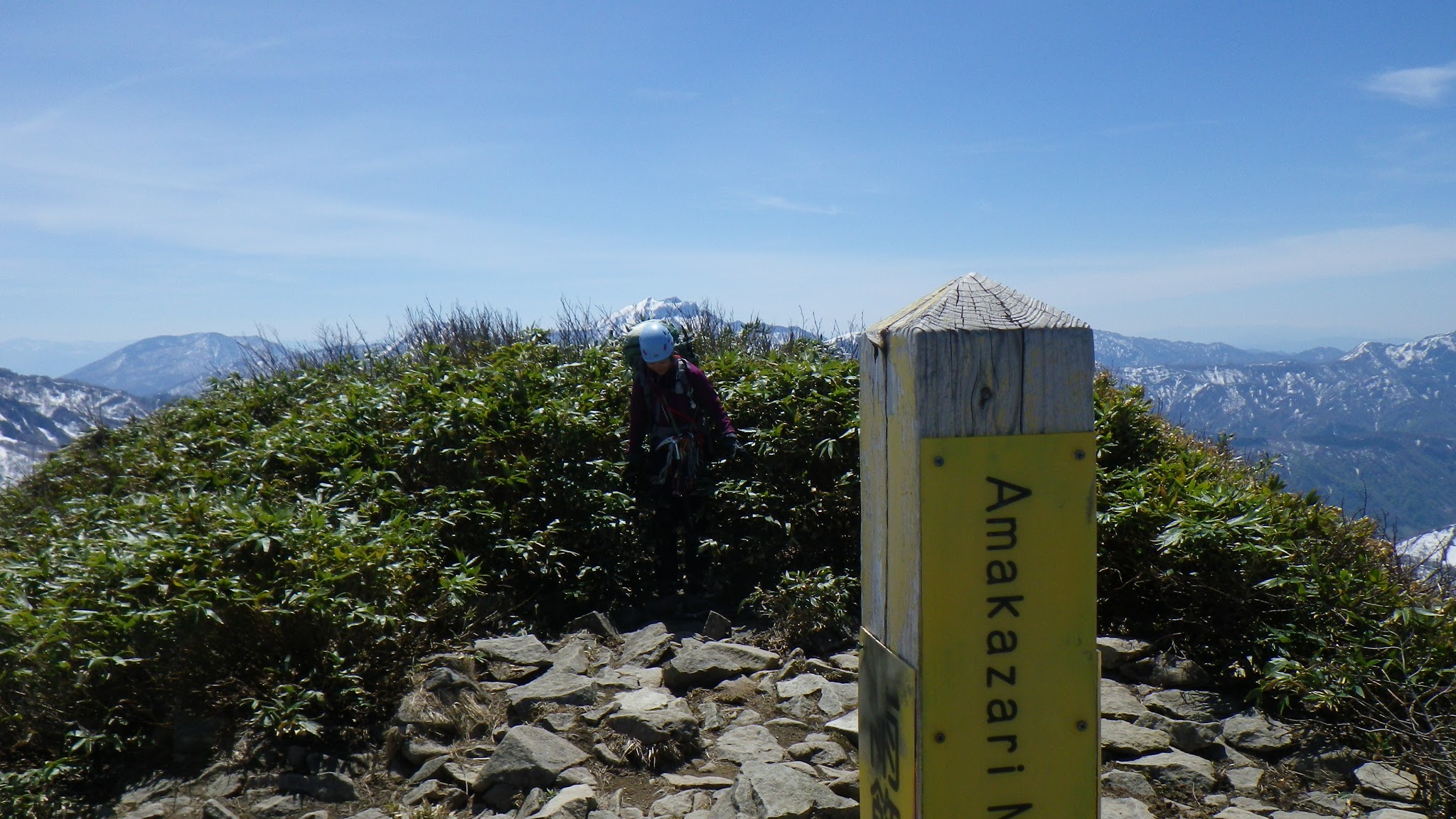 ヤブ稜を抜けると雨飾山の頂上に飛び出す。