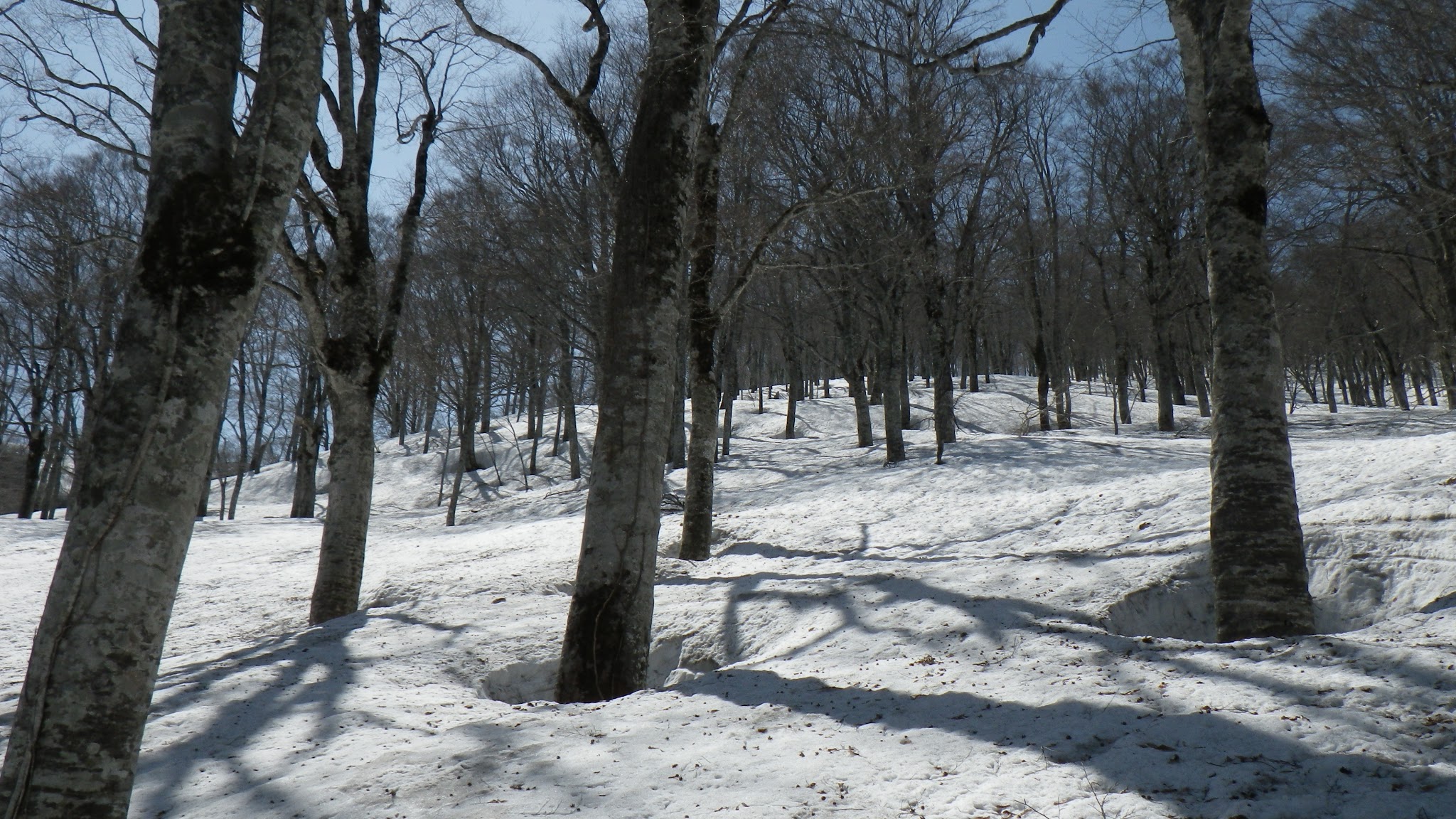 芽吹き前の明るいぶな林をふたりでとぼとぼ歩きました。