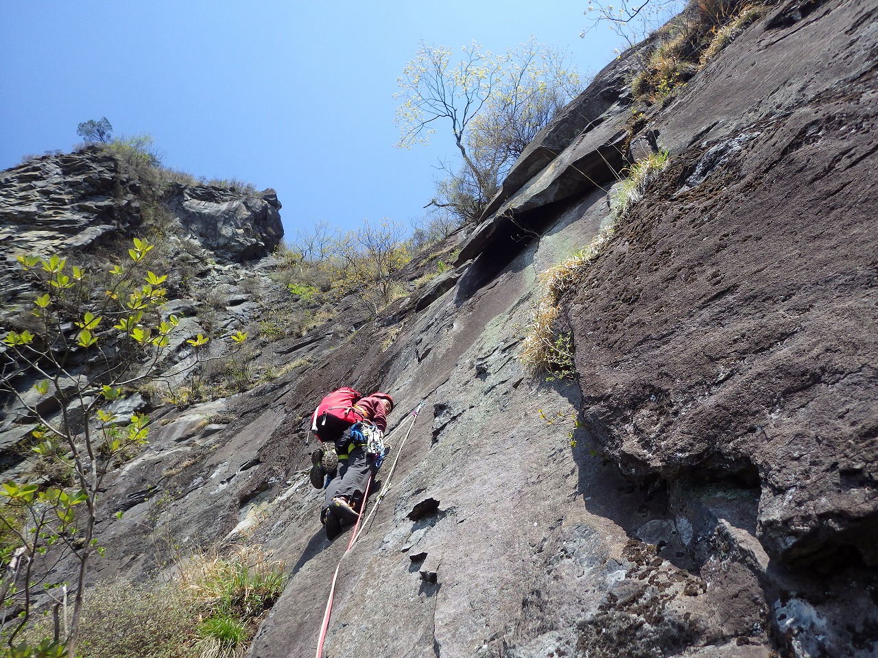 おまけピッチ。既に登山道。はしごを登れば獅子岩ピークだが、おまけルートを登る。