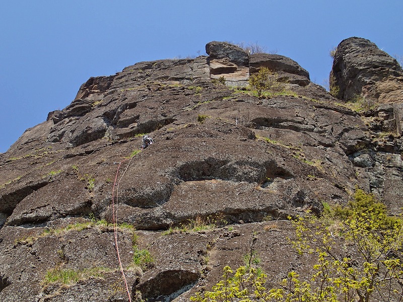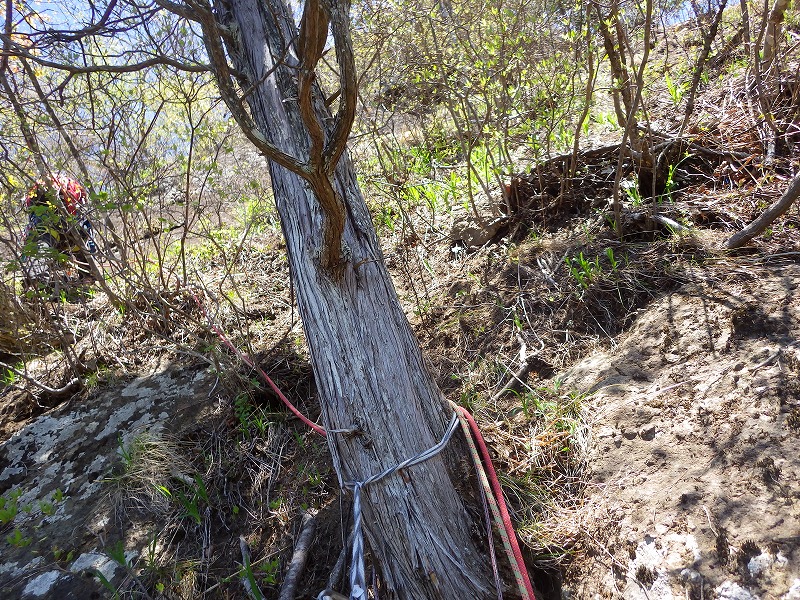 岩場の手前に、しっかりした立木があり、ここでピッチを切る。