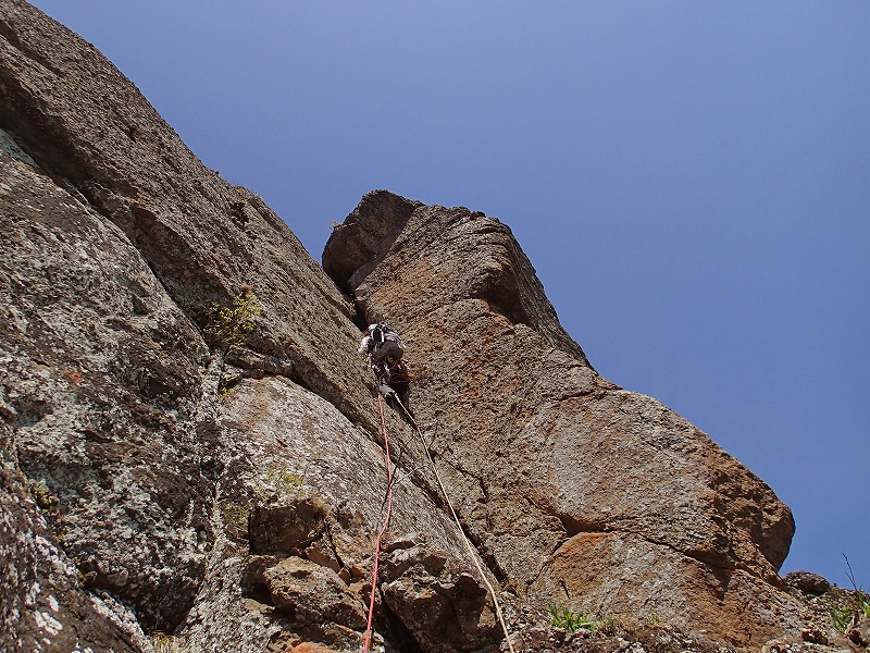 後半は岩場に出るが、少し脆く、フリーで行くのはとても勇気がいる。