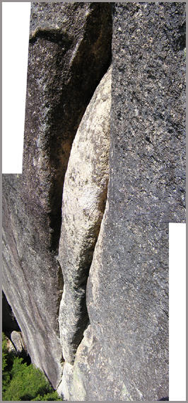 これは二段目にあるオフフィンガー~ハンド~苦悶のワイドと続く30m弱の美しいルート(5.11b)で、アラスカで亡くなった友人が2005年に初登した素晴らしいラインです。下から容易に歩いて取りつくことができますので、是非トライしてください。