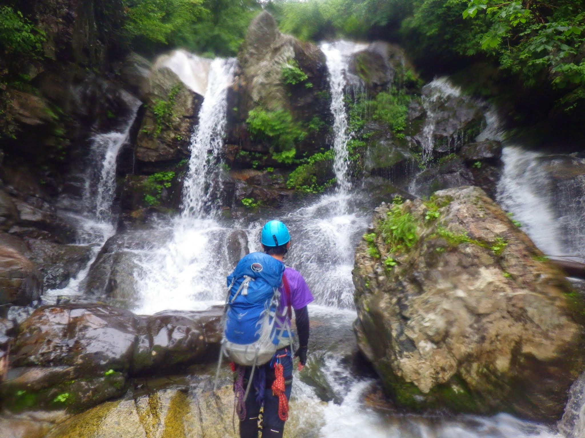 I村君が先頭を歩き、ちょっとした滝ではサッサッサッと登ってはお助け紐を投げてリズミカルに進む。