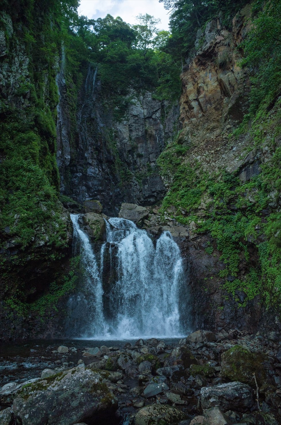 途中出てくる大滝は脆く垂直なので登れないですね。巻きが楽しい古典的な名ルートという感想です。