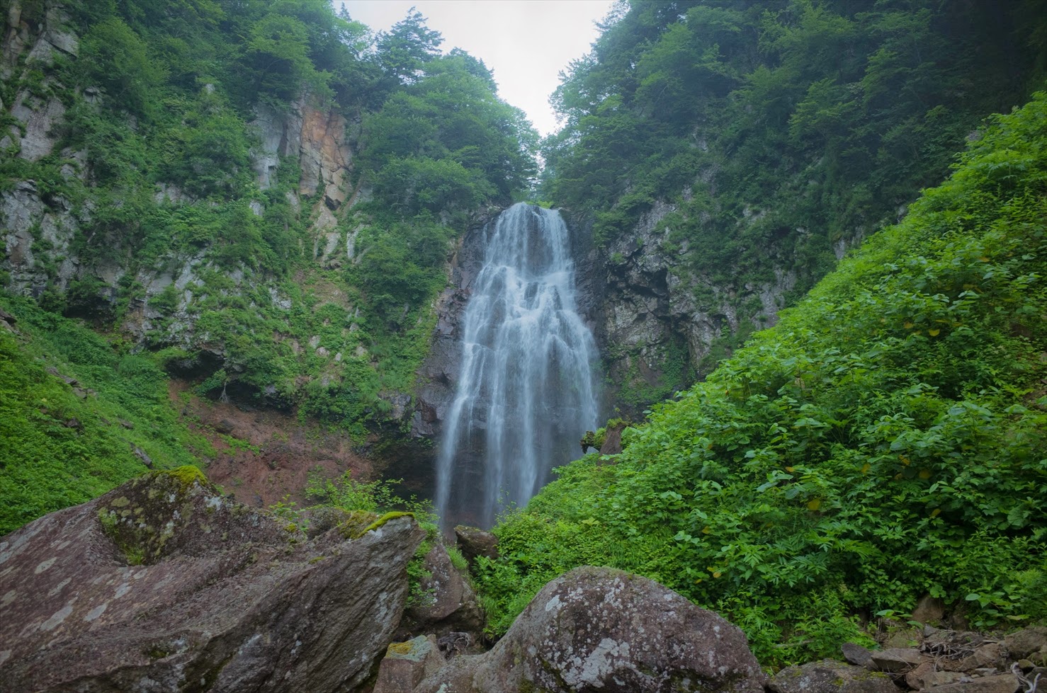この辺りでついに雨が降り始める。地形からして増水は早くないだろうが、行動を急ぐ。左岸を100m弱あがってから薄いヤブをトラバースしていくと、懸垂なしで落ち口近くに降りることが出来た。ヤケノママから先は特に問題になるようなところもないが、雨は土砂降りに。おまけに風も強くなってきてかなり寒い。最近の豪雨の影響か、途中大規模な土砂崩れで渓相が荒れていた。最後は本流筋を詰めて少しヤブを漕いで登山道へ。雨のせいで沢と化した道を下山してグランデコに降り、タクシーでクルマを回収した。土湯温泉で風呂に入って仙台で牛たんを食べて解散。