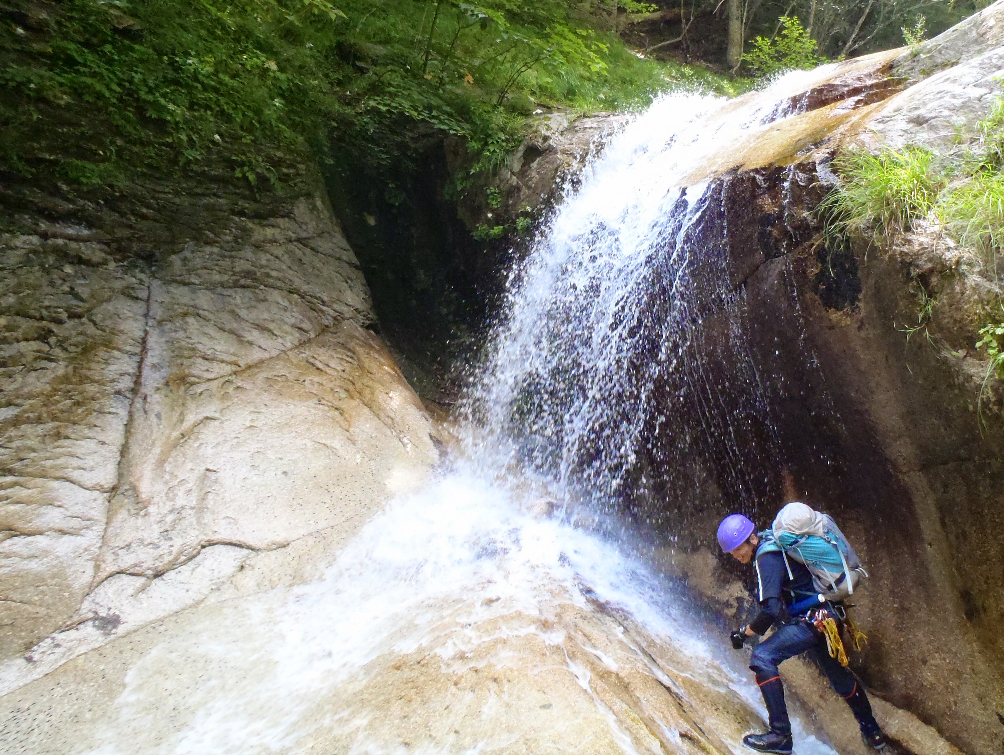 その後、20mの滝が現れ、巻きも可能だが、ここはYちゃんリードでシャワークライム。