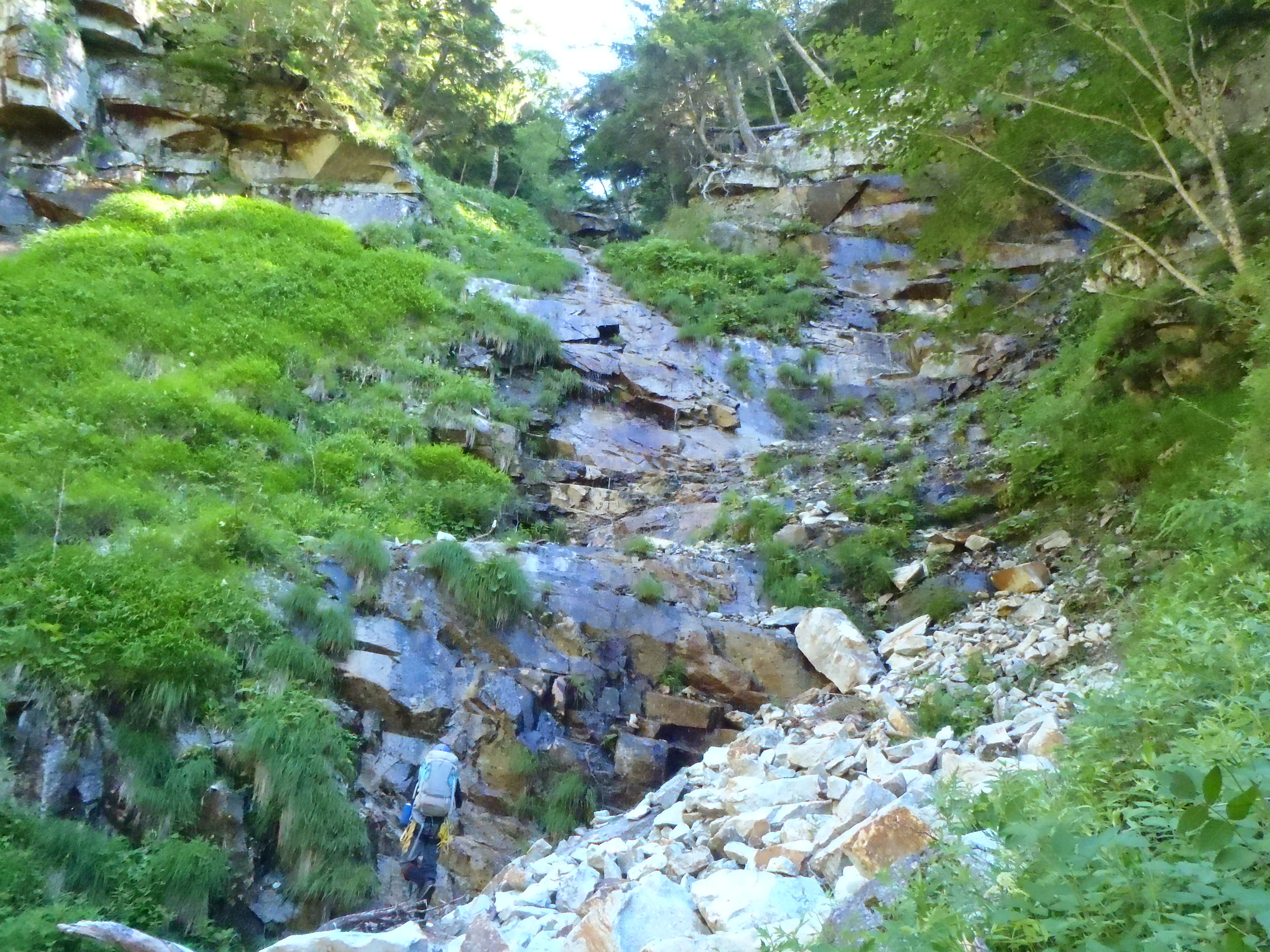 ・金山沢はナメ沢だが、ヌルヌルでずべりやすく、側壁の落石多し。