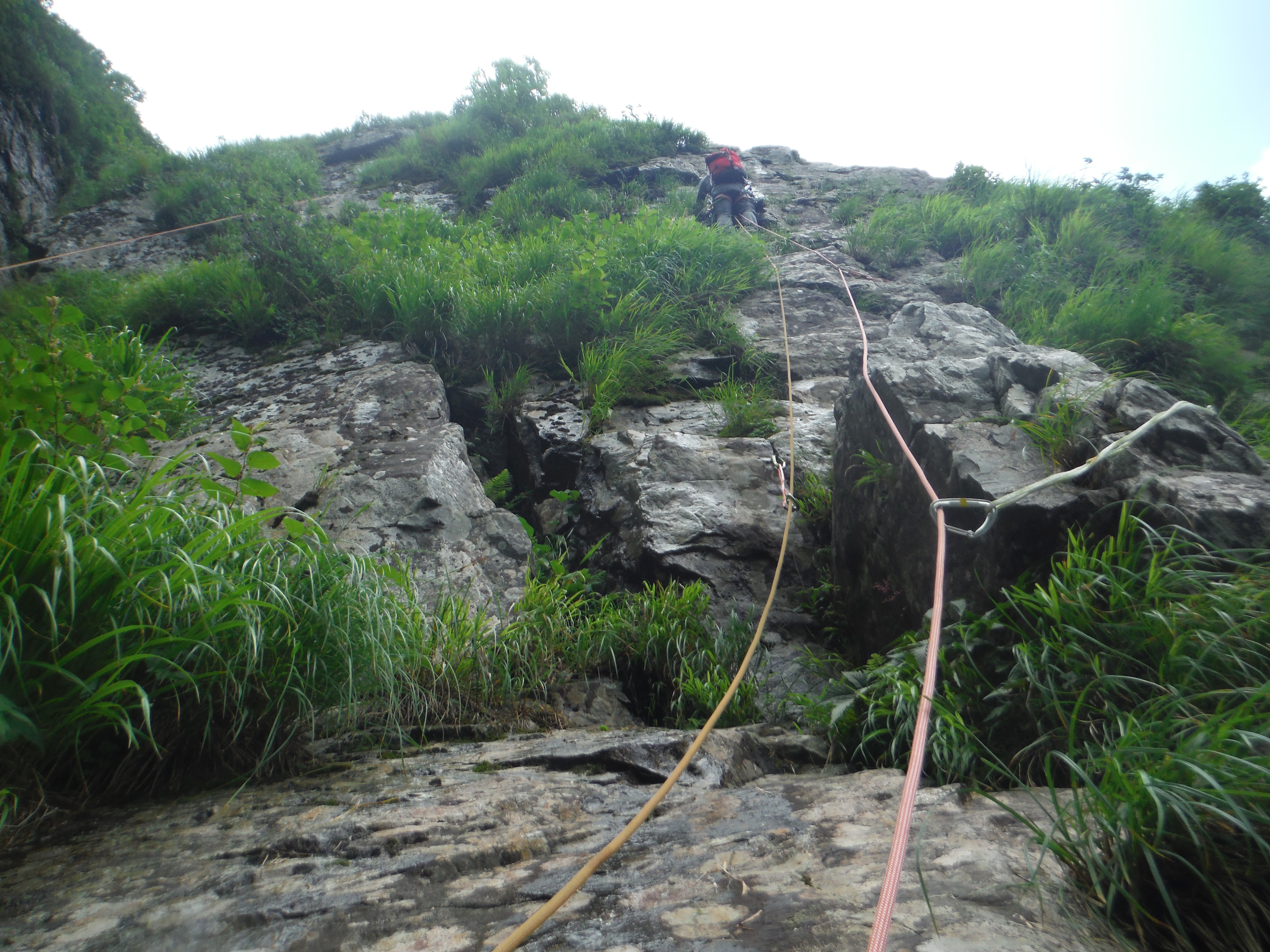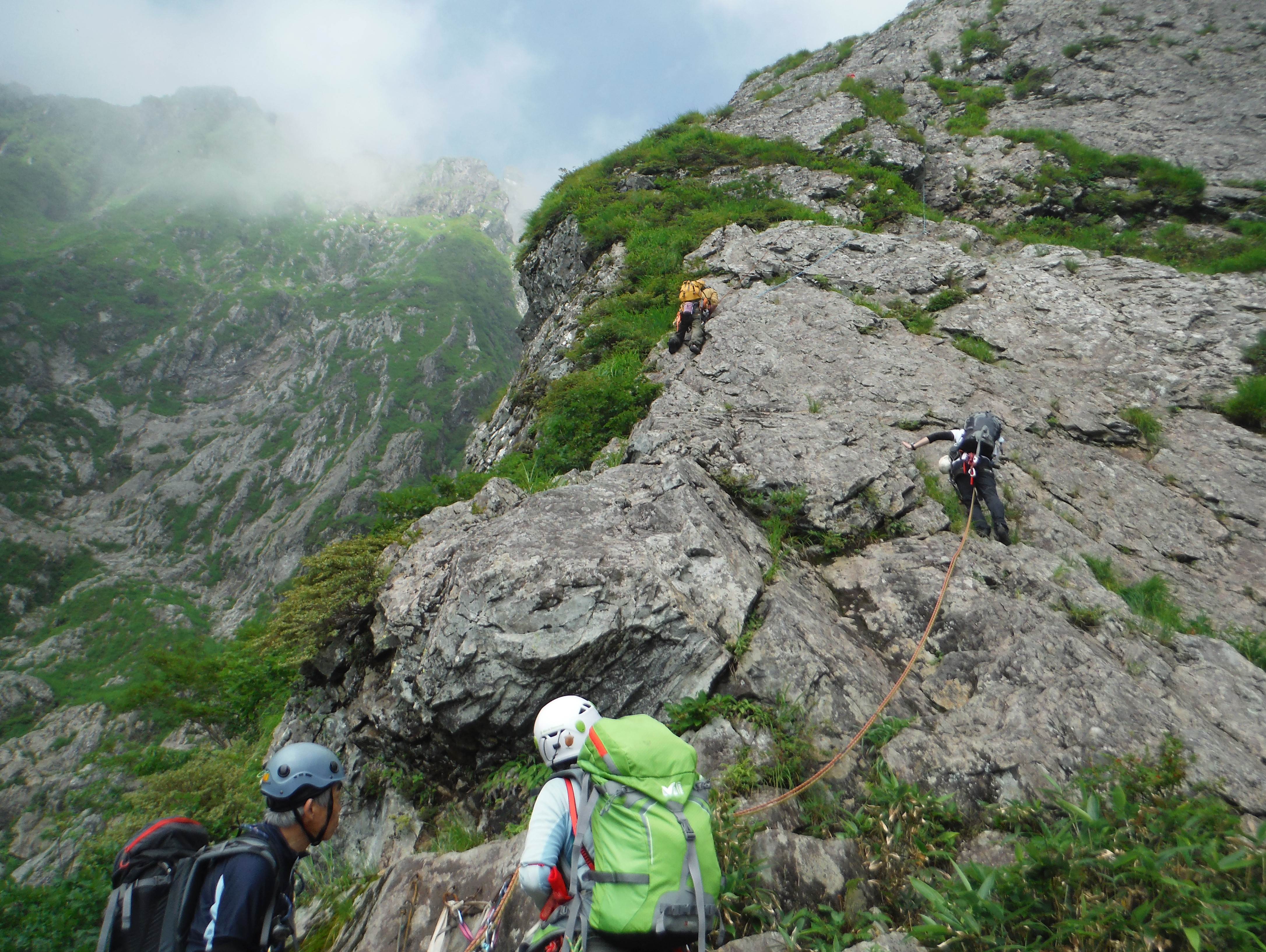 一箇所、これまた落ちたらヤバイ箇所があったので、N島リードでロープを出す。ガレガレの岩で嫌な感じだが無事に突破。