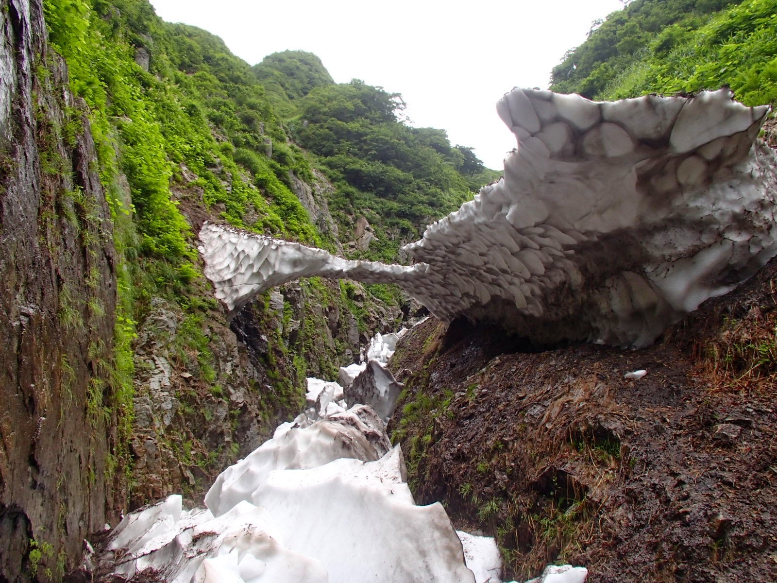 奥の二俣から左にしばらく進むと、またしてもスノーブリッジが登場。しかもかなり薄く、今にも崩れそう。