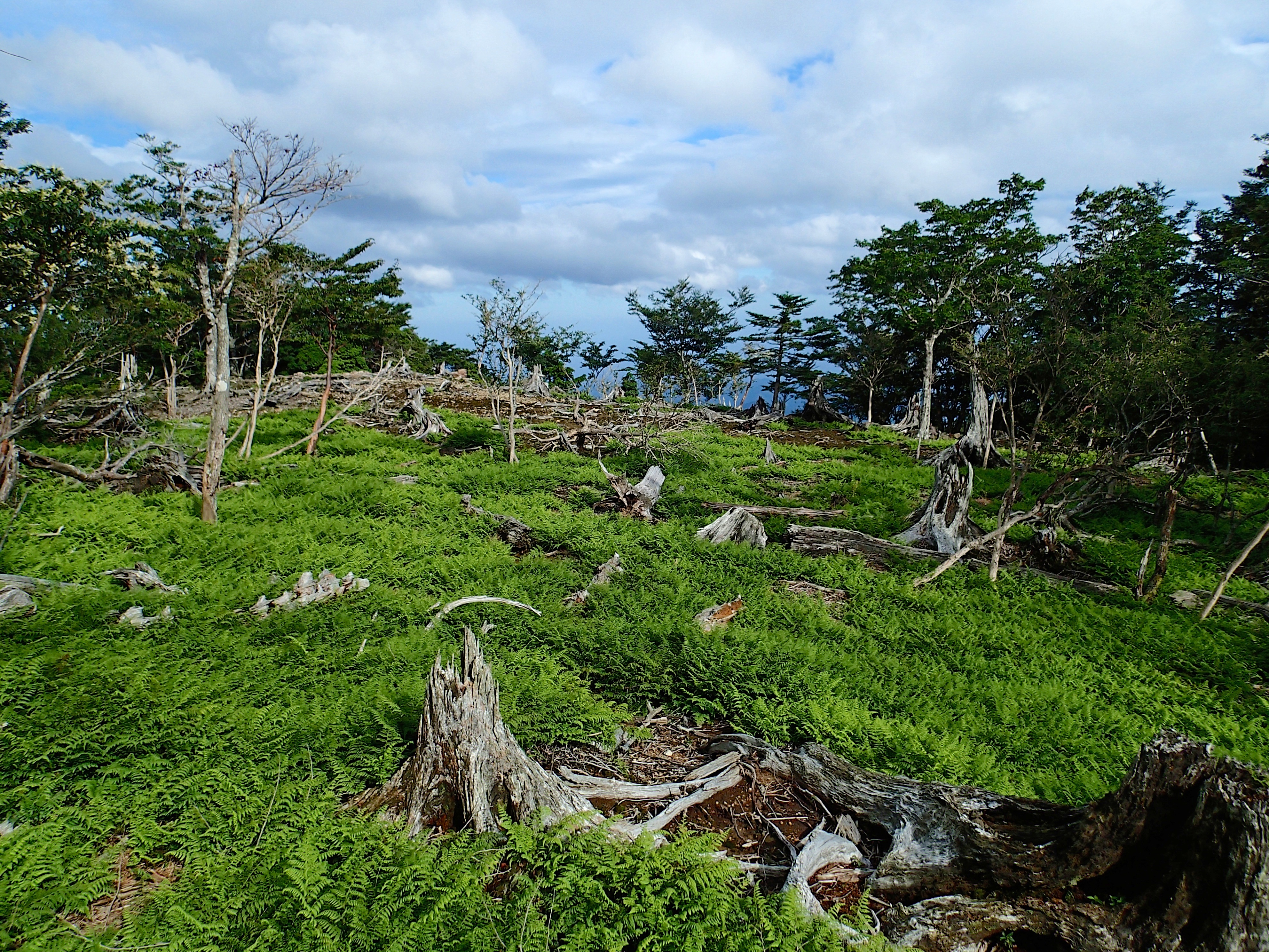 昨日に引き続いて夜は雨に降られたが、源頭なので問題なし。4:00起きで5:40に出発。