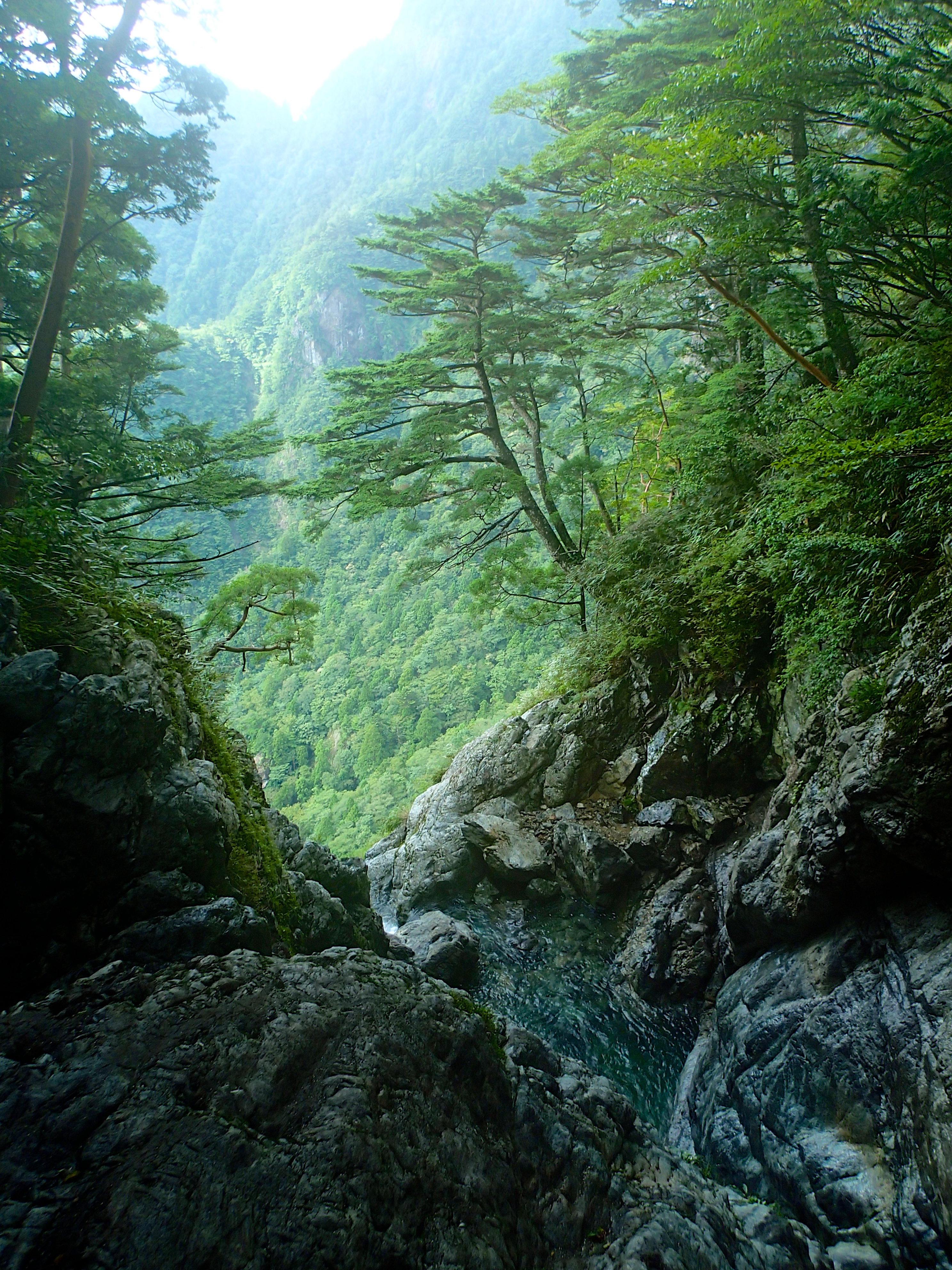 後はその下の20m滝を懸垂で下り終えれば安全地帯。雰囲気のある河原を歩いて、出合から林道へ上がる。熊野街道まで一時間以上歩き、タクシーで発電所の車を回収。尾鷲で打ち上げして帰京した。