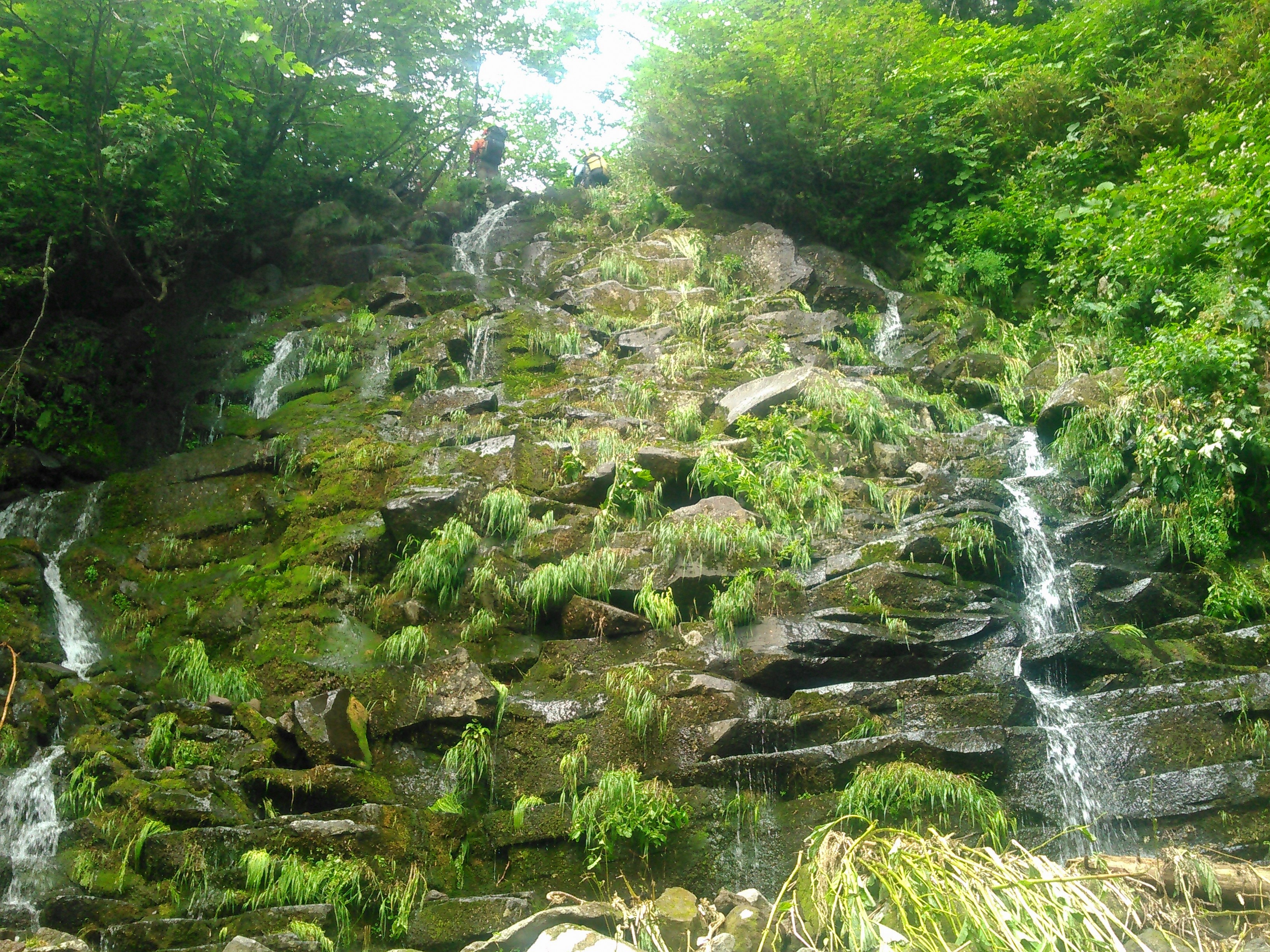 入渓してすぐに登れない滝が出て右岸から高巻いたあとは奥入瀬を彷彿とさせるような気持ちのよい遡行が続く。230mで二俣を左に、330m二俣を右へ取る。