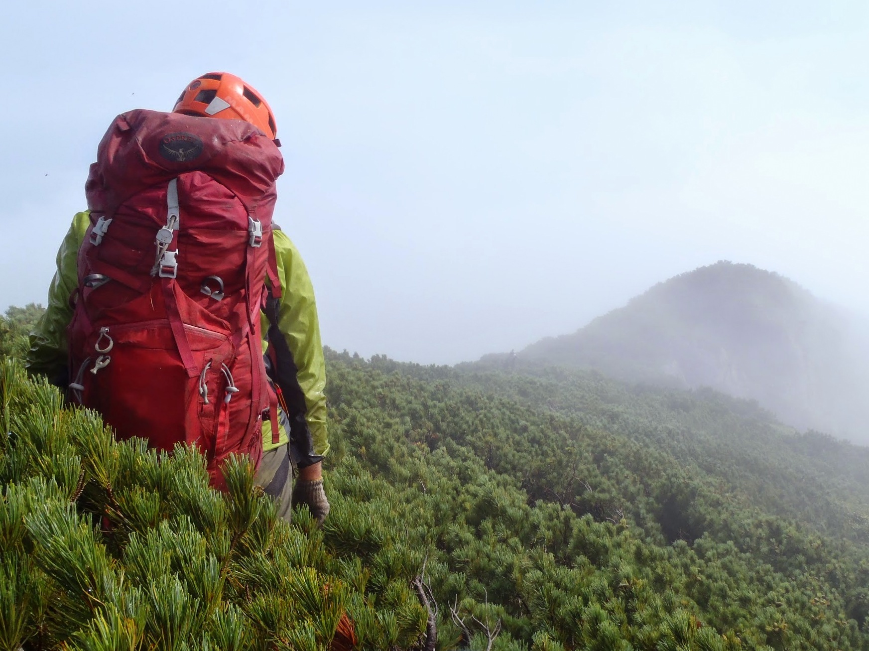 ここからは今度こそ楽勝!と思ってたがガスが出て視界が悪いうえに笹薮がすごいことになってて登山道って感じでなくなってきている。