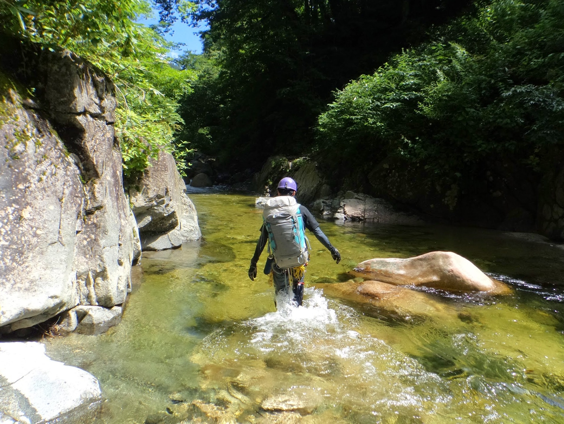 7:00駐車場-9:10ヘイズル沢出合-9:40狩小屋沢(装備休憩30分)-10:20楢俣川本流(入渓)-11:30深沢出合-15:00大滝下(幕営)