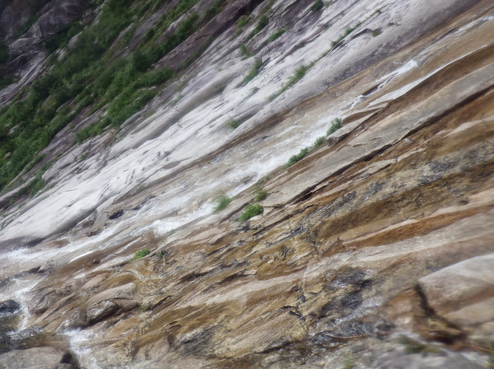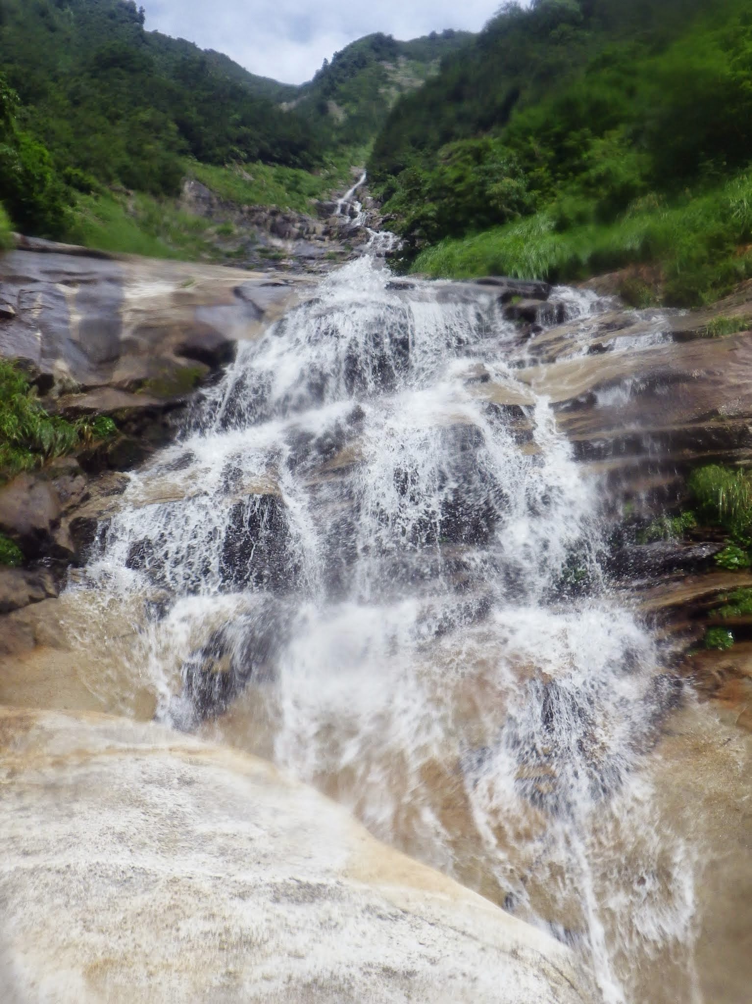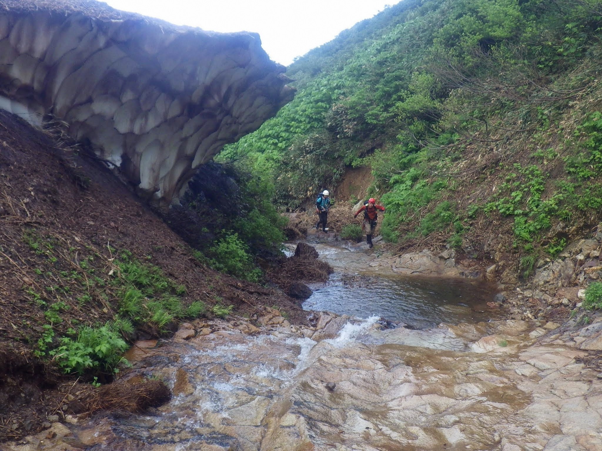 50m大滝を巻き上がった所から渓相はスラブが目立つようになり、まもなくでブログやガイド本に写真が載っている第一スラブの下に着いた。